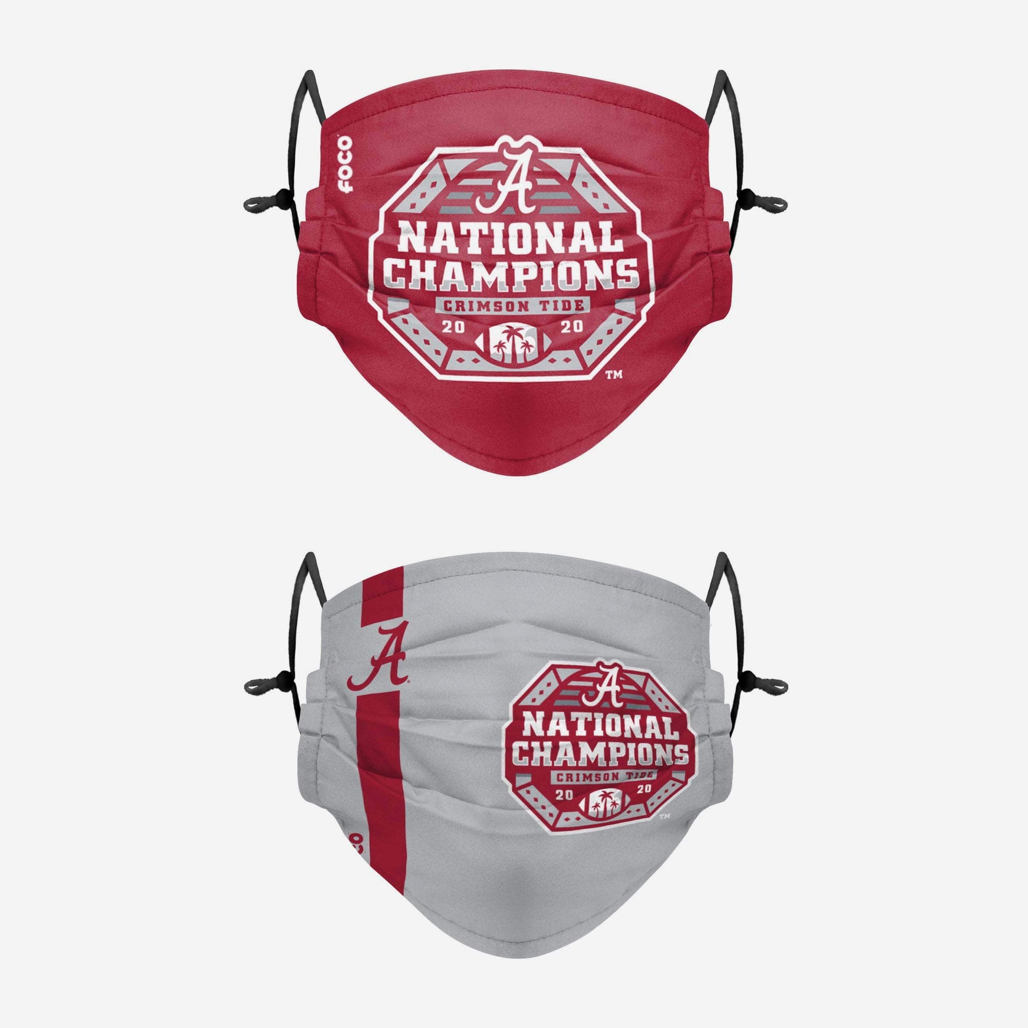 Cover up with the champs! Celebrate the big win with this Alabama Crimson Tide 2020 Football National Champions Adjustable 2 Pack face covering!