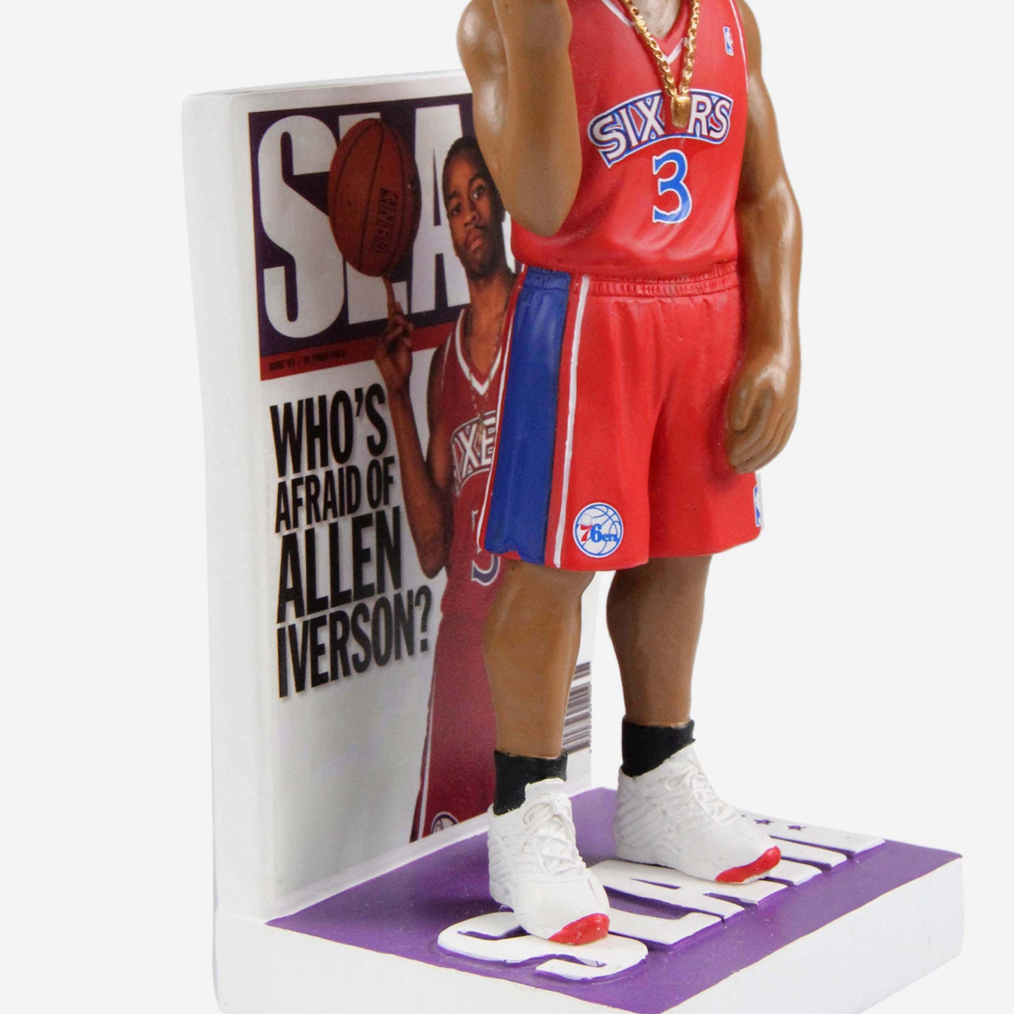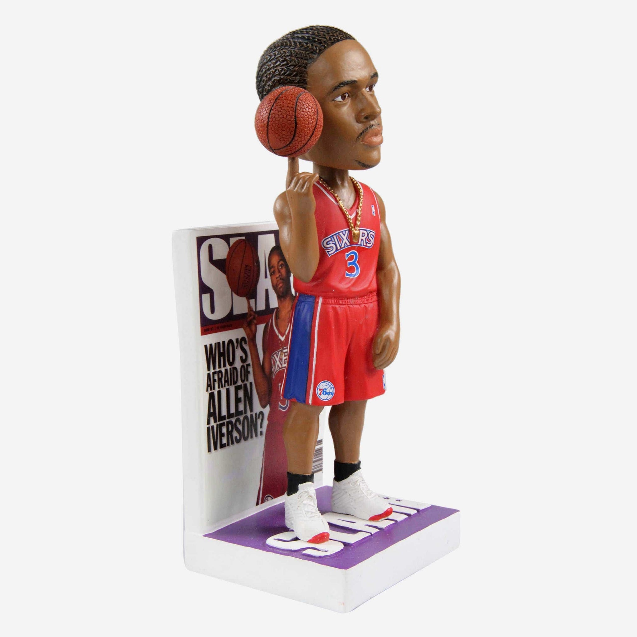 Here he comes, Philadelphia! Feel the love for an all-time great with the Allen Iverson Philadelphia 76ers Red Jersey Slam Magazine Cover Bobblehead!