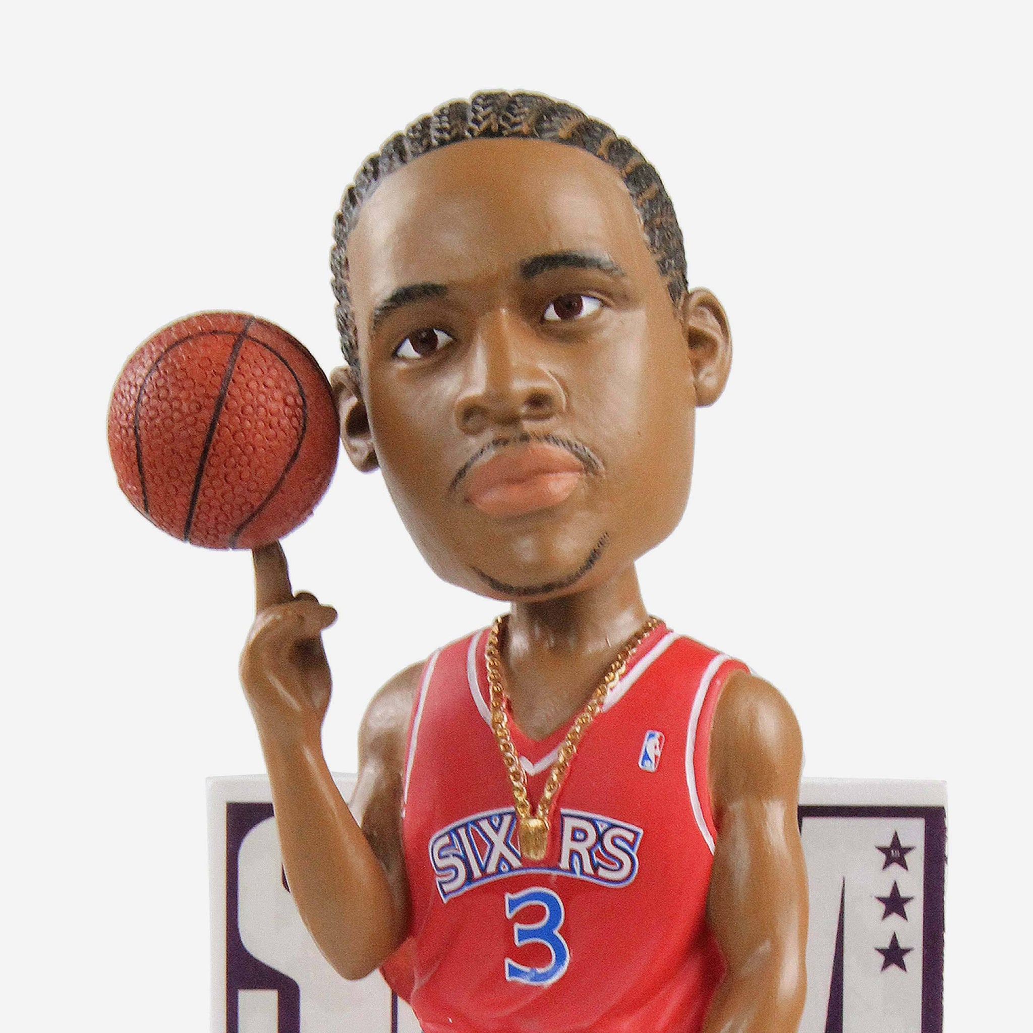 - Portrays Iverson posing in his Sixers uniform and holding a basketball, ready to make another highlight