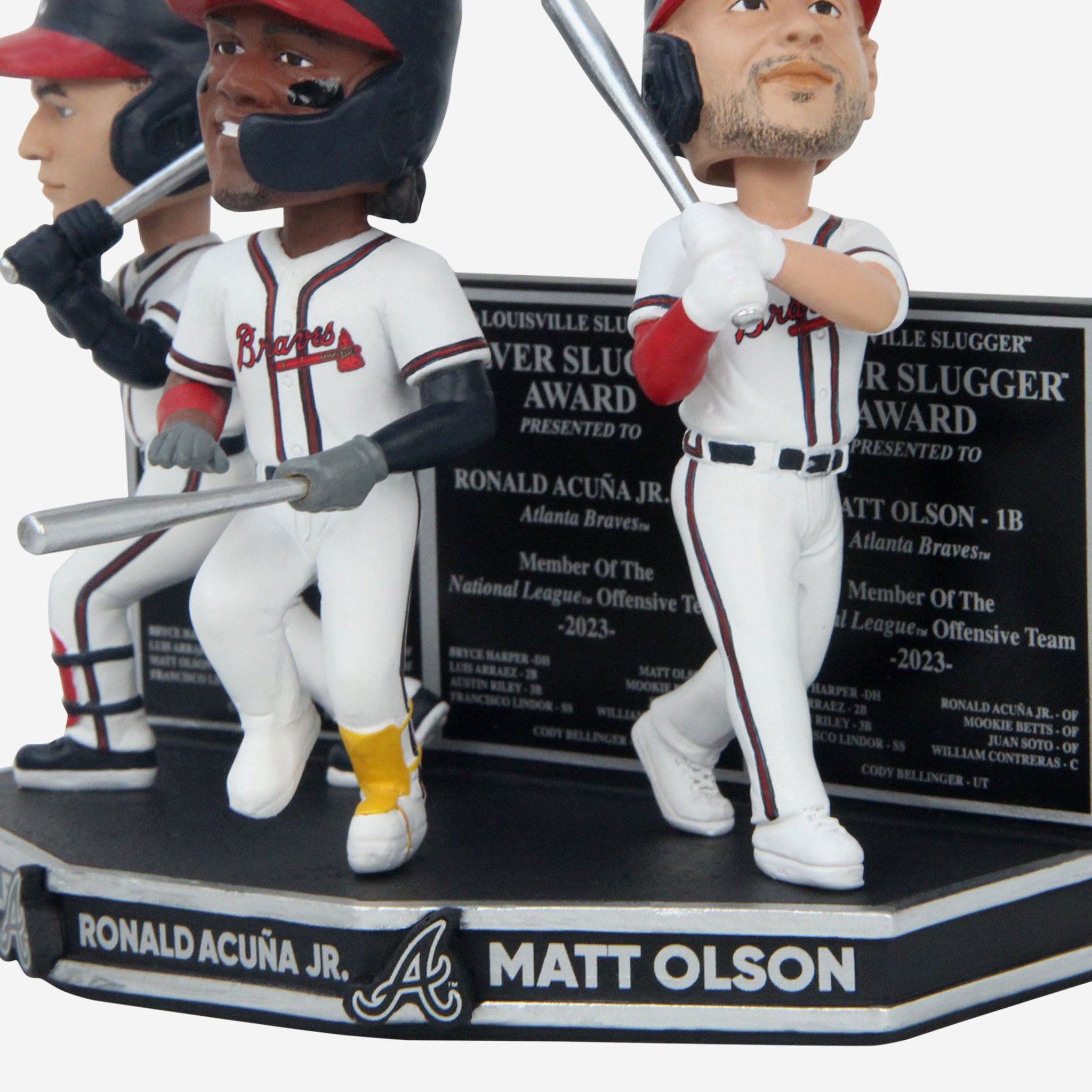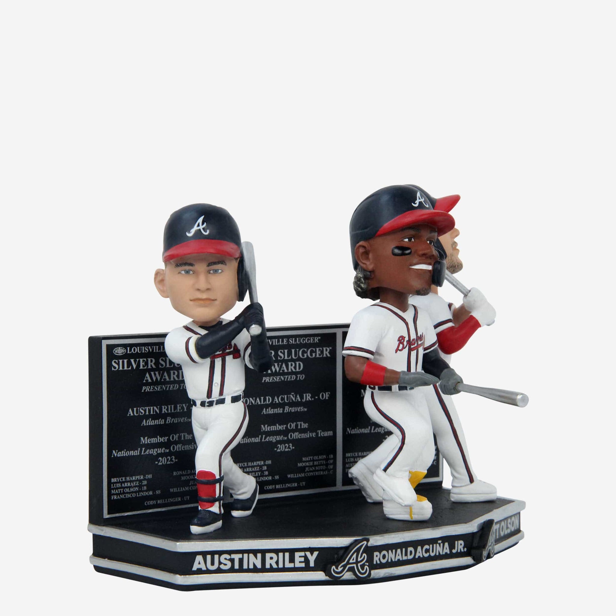 - Portrays Ronald Acuńa Jr., Austin Riley, & Matt Olson wearing their gray gameday uniforms in batting action poses, ready to show off the slugging skills that earned them those awards