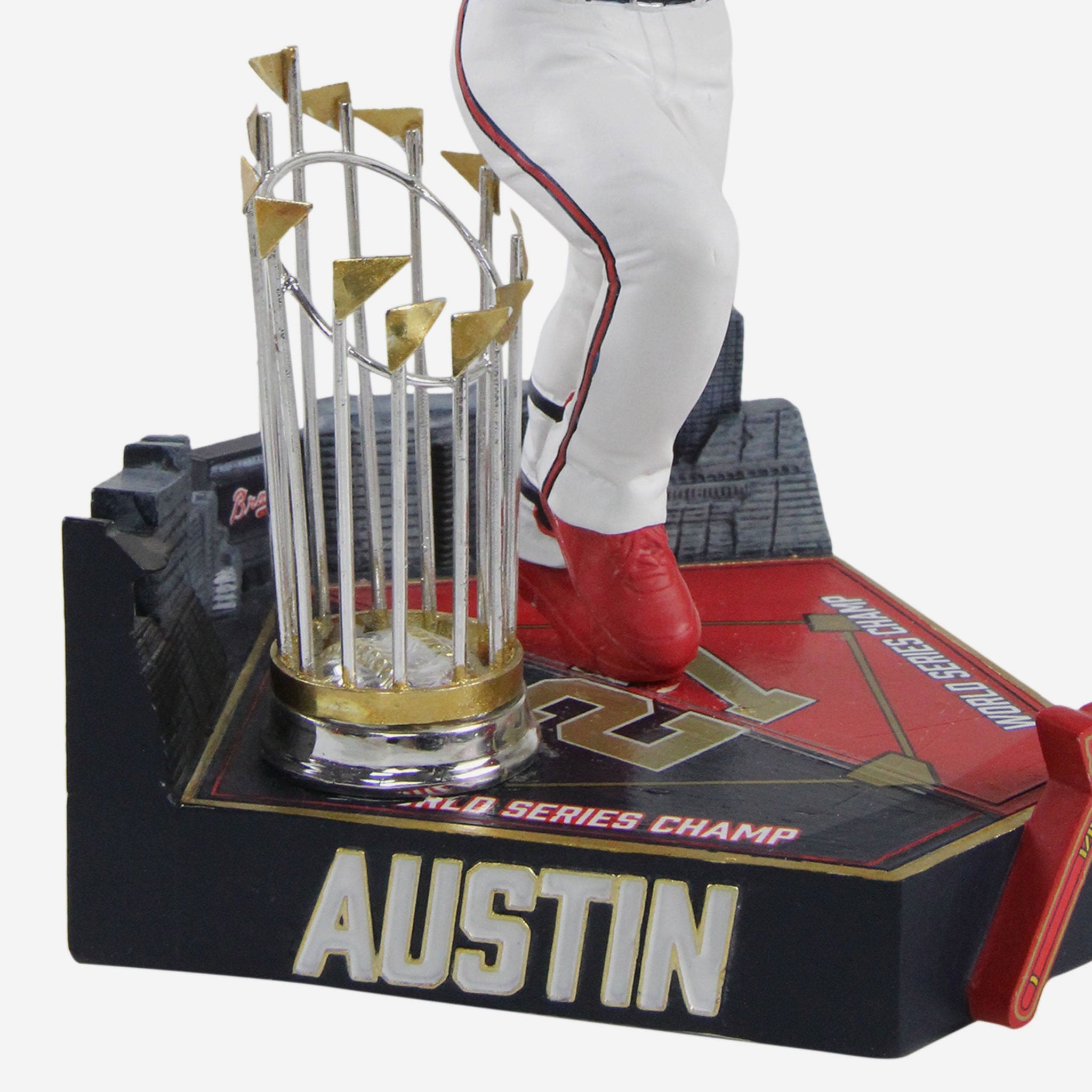 You may have not been able to celebrate with the team after the big win, so we're bringing the celebration to you in the form of this Austin Riley Atlanta Braves 2021 World Series Champions Moment Bobblehead!