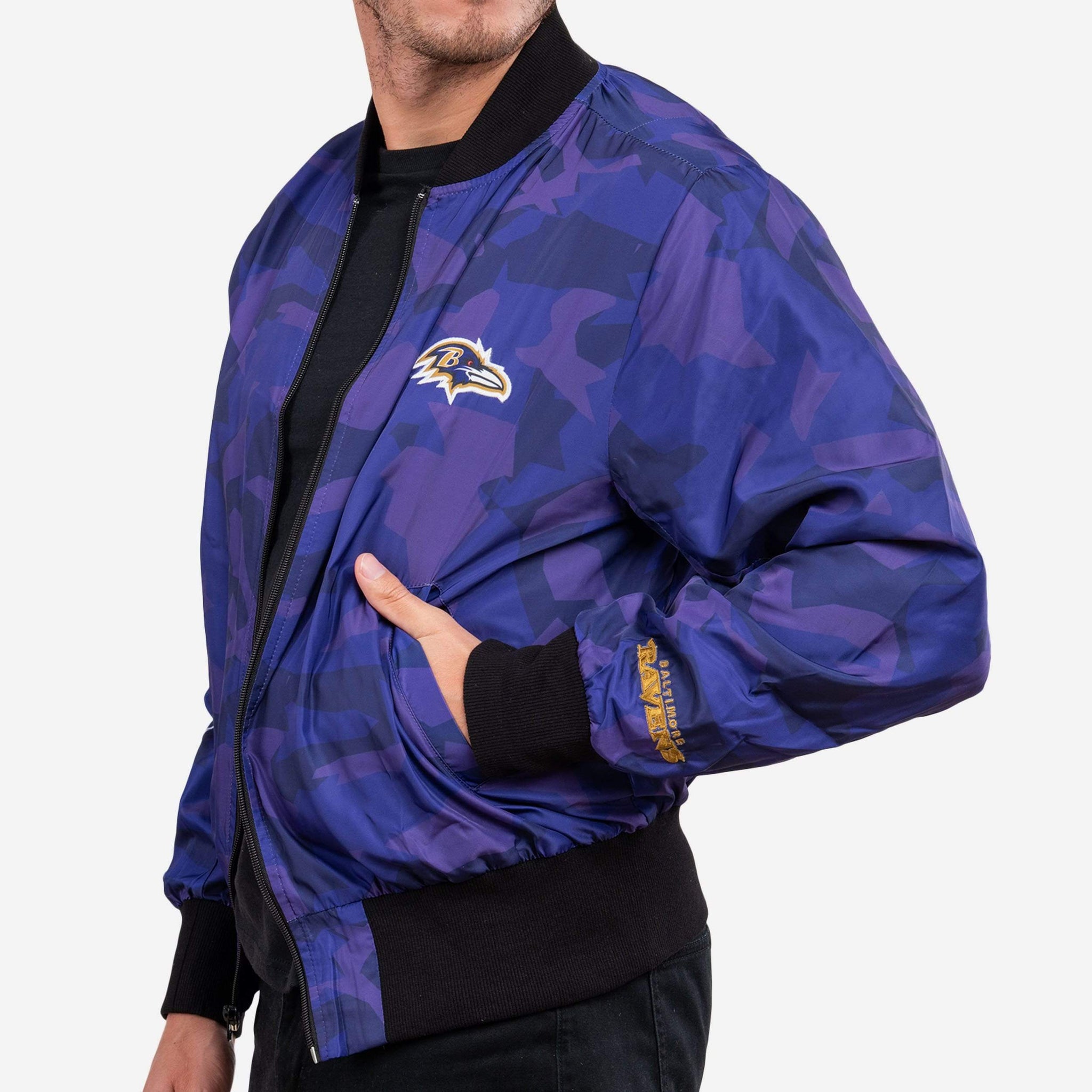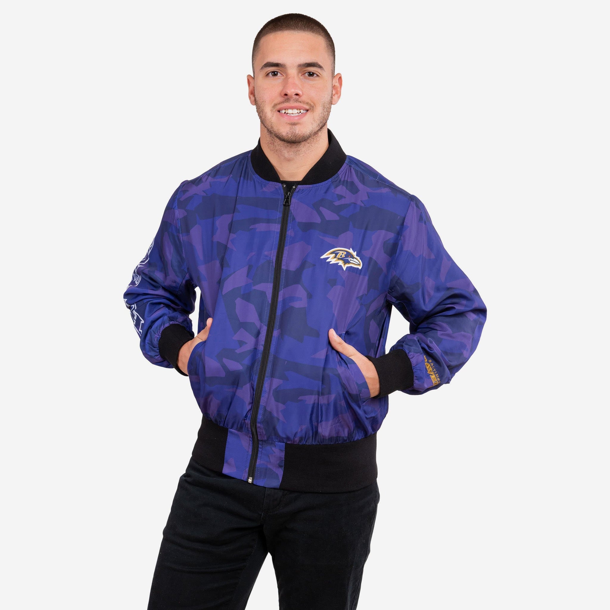 This Baltimore Ravens Men's Camo Bomber Jacket is, as the kids say, the bomb dotcom. Show off some bombshell style and rep the team all at once!