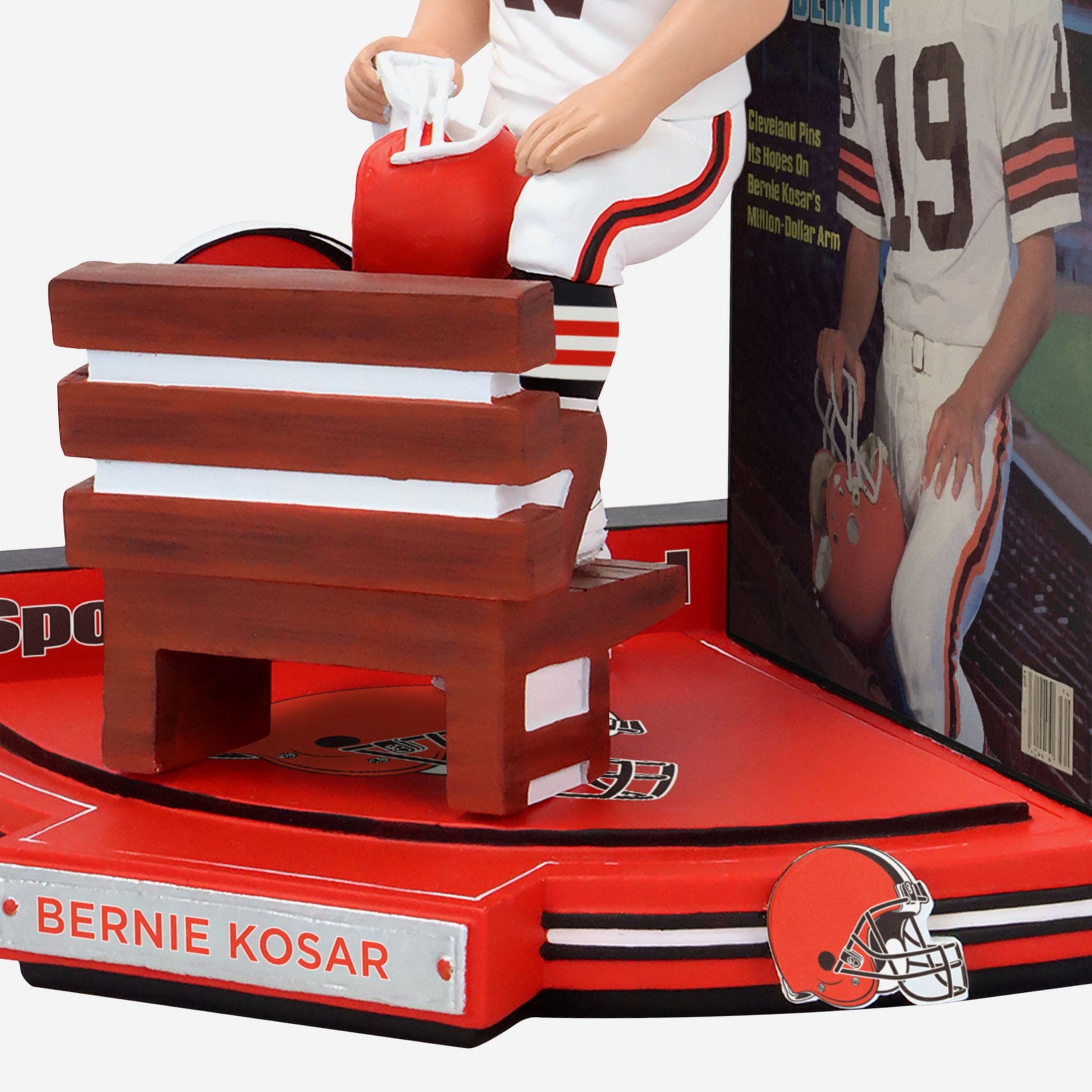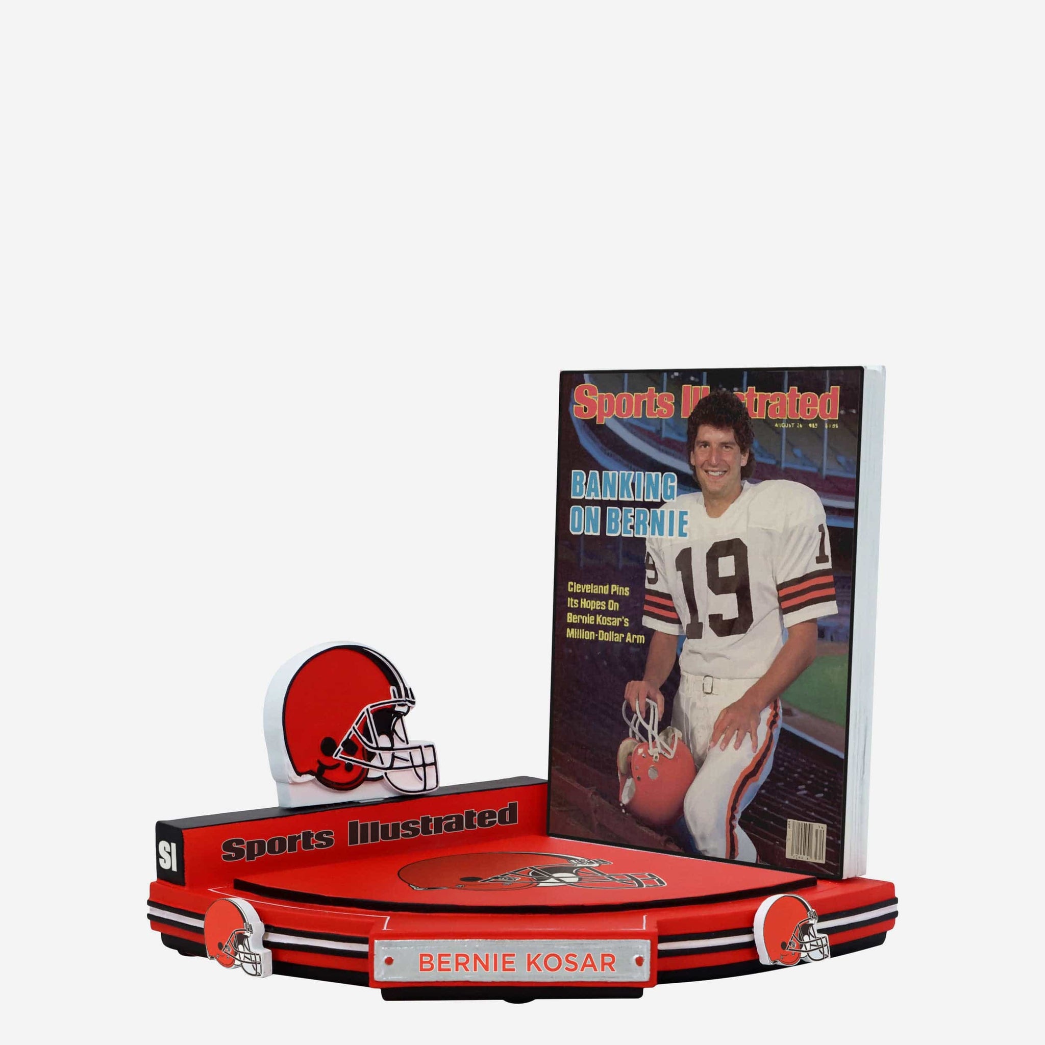 August 26, 1985: Cleveland pins its hopes on Bernie Kosar’s million-dollar arm. Make a newsworthy addition to your fancave with the Bernie Kosar Cleveland Browns Banking on Bernie Sports Illustrated Cover Bobblehead.