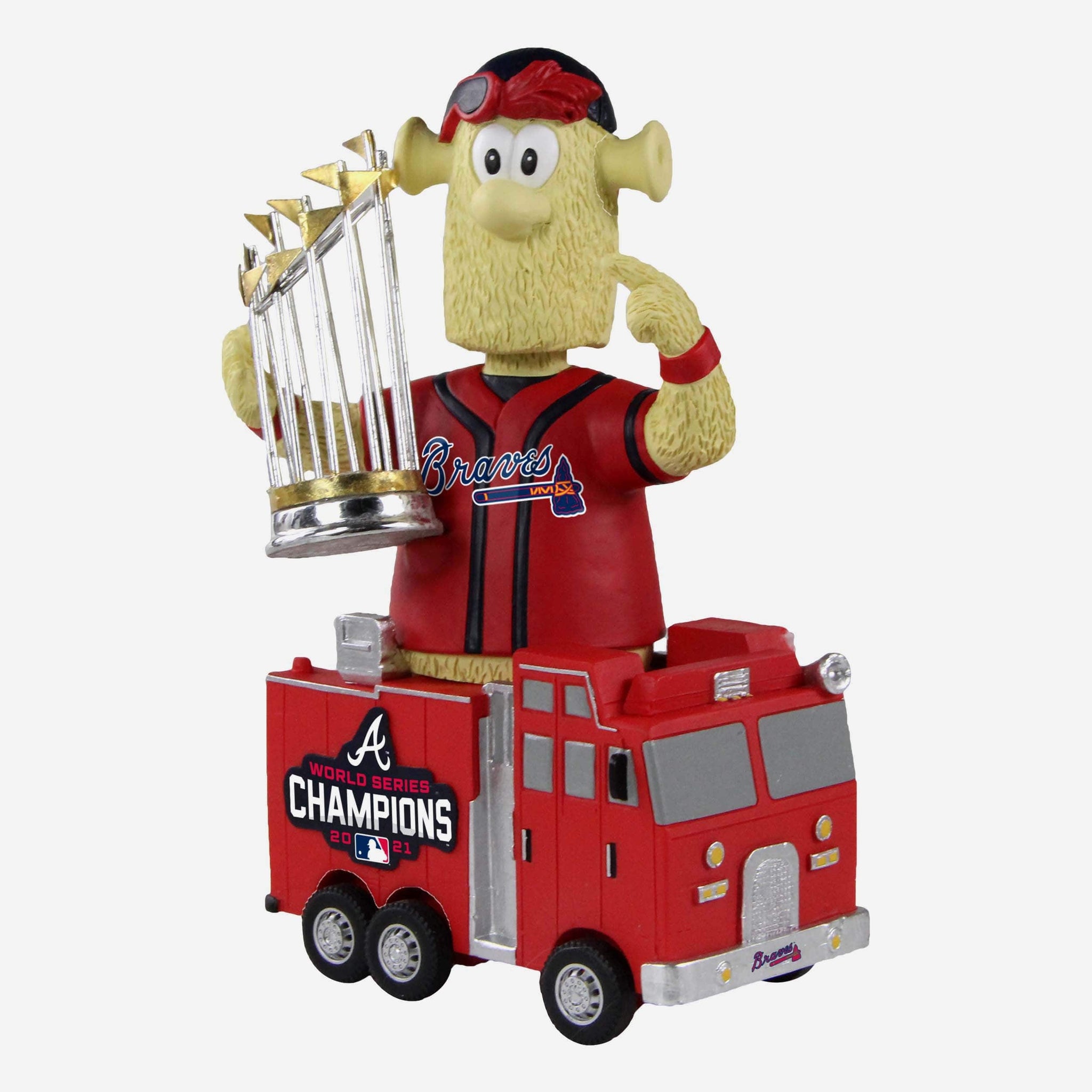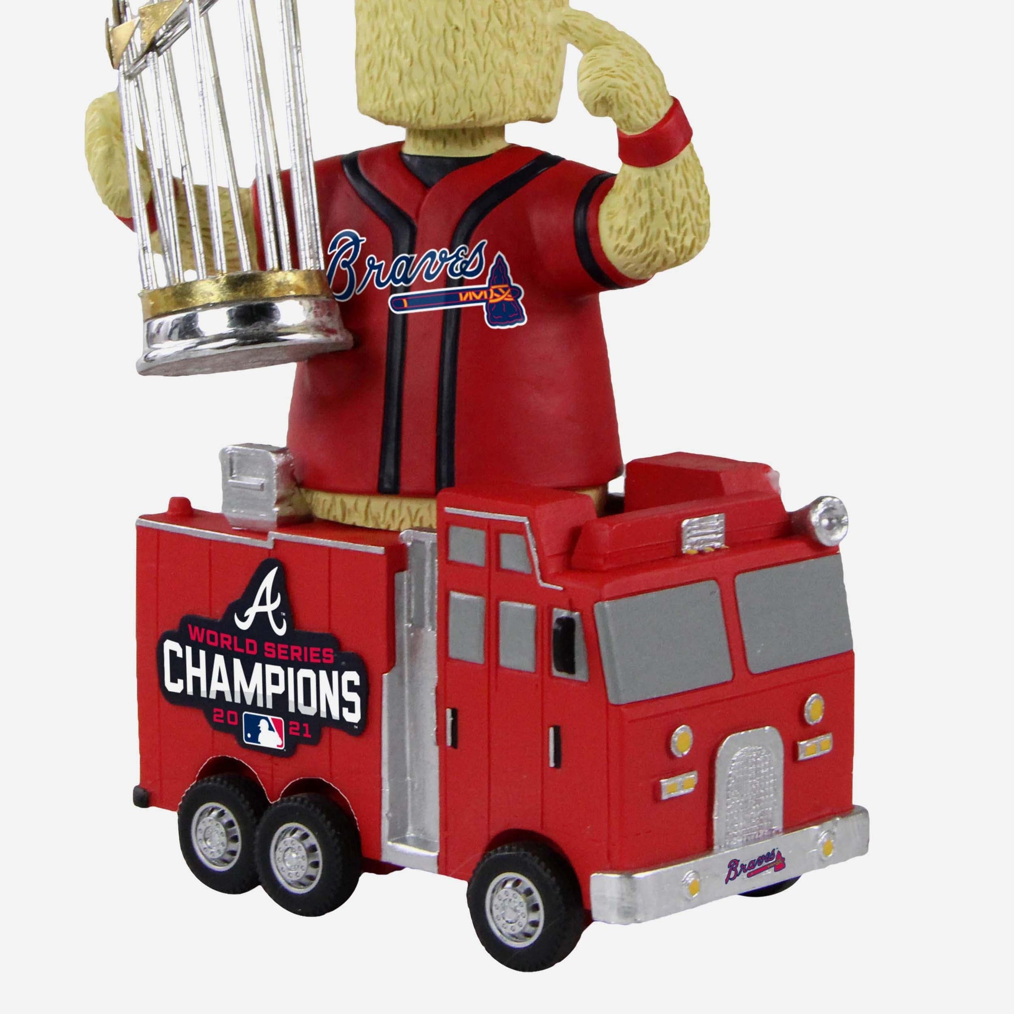 Are you FIRED UP to celebrate the Braves' big win? Of course you are. Keep the party going with baseball's best mascot and add this Blooper Atlanta Braves 2021 World Series Champions Fire Truck Celebration Bobblehead to your collection!
