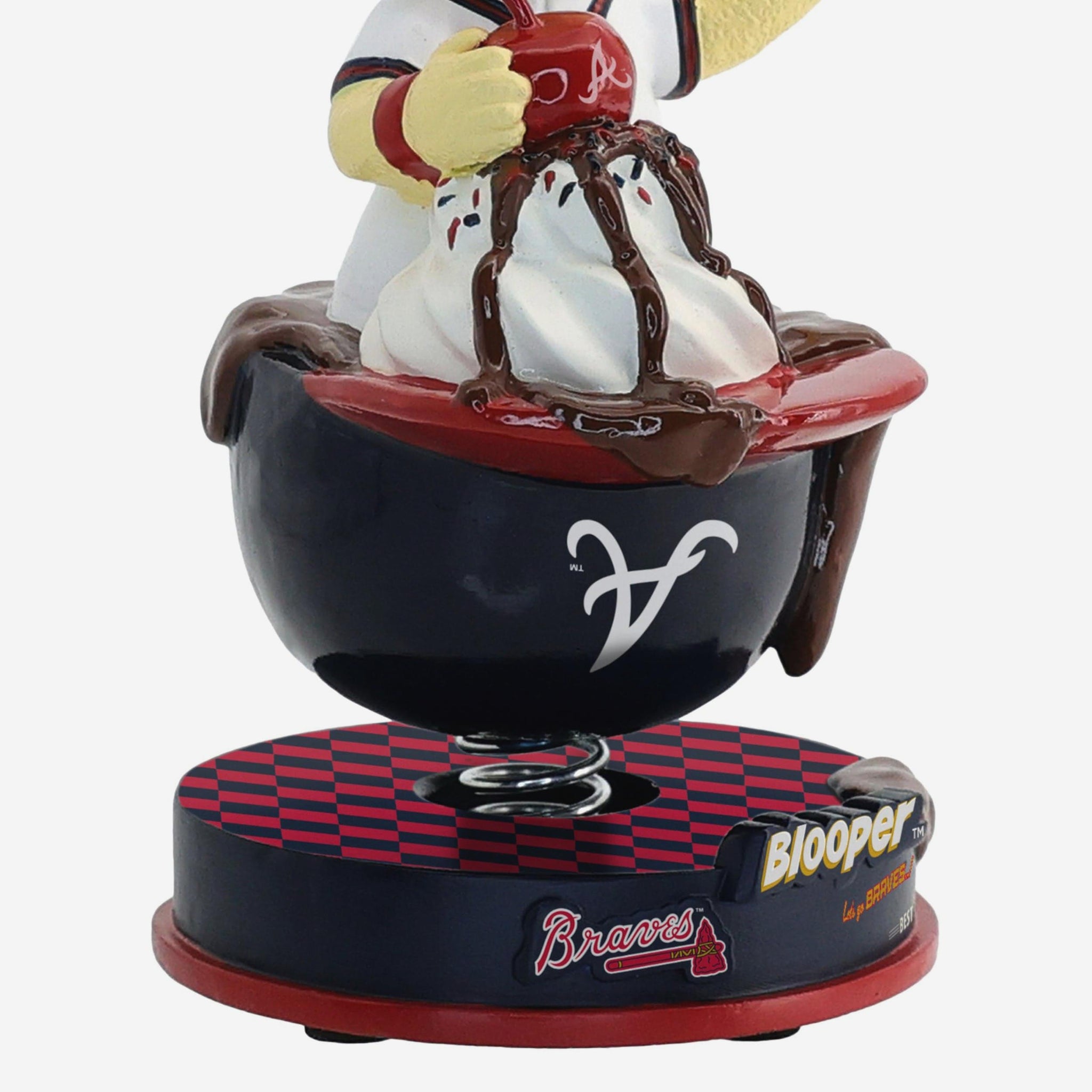 Blooper is serving up team spirit, one scoop at a time! Add some flavor to your fandom with the Blooper Atlanta Braves Ice Cream Helmet Mascot Mini Bobblehead.