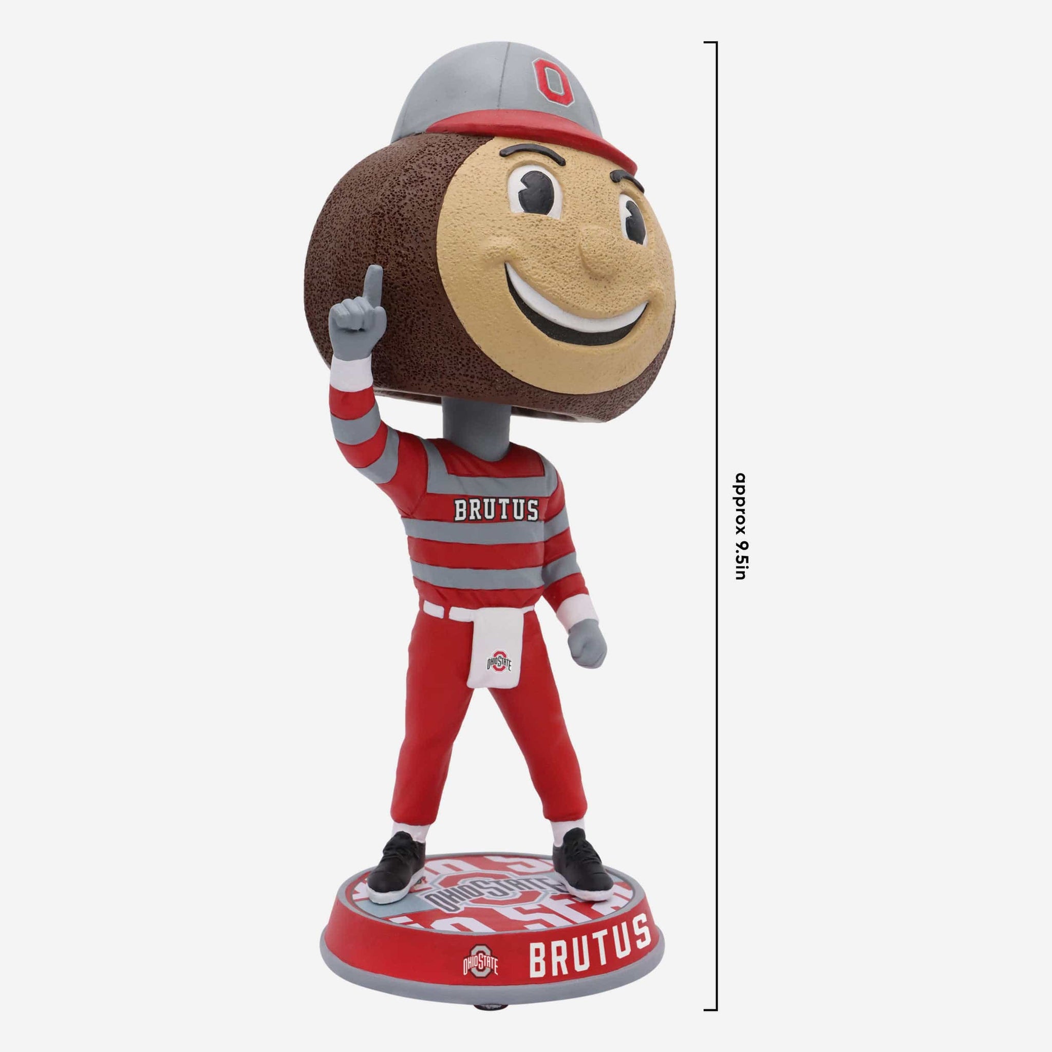This mascot is always ready to bring the Buckeye faithful to their feet! Showcase your pride for the Scarlet and Gray with this Brutus Buckeye Ohio State Buckeyes Field Stripe Mascot Bighead Bobblehead.