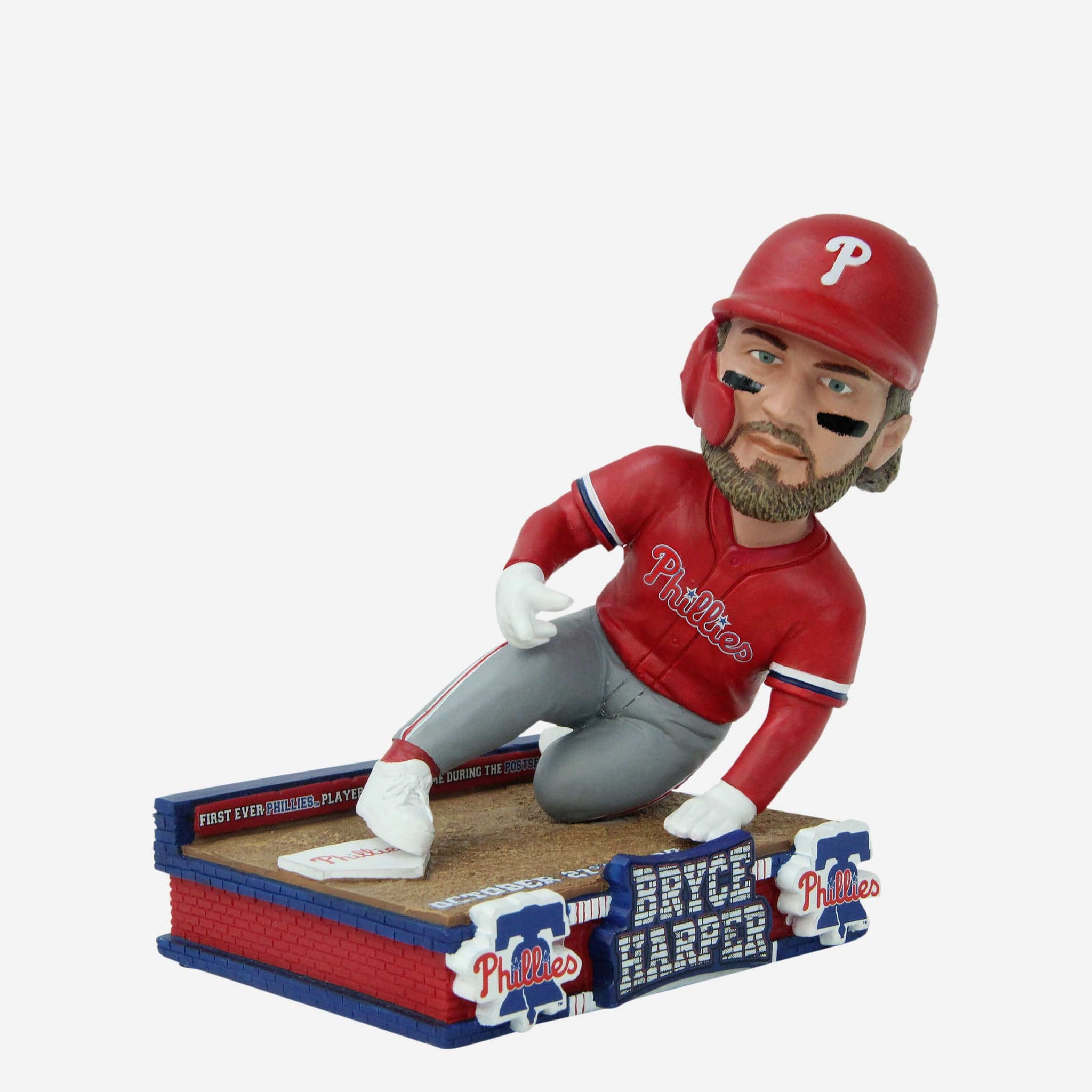 Ring the bell for this historic steal! No. 3 is ready to lay it all on the line with the Bryce Harper Philadelphia Phillies First Ever Phillie to Steal Home During the Postseason Bobblehead.