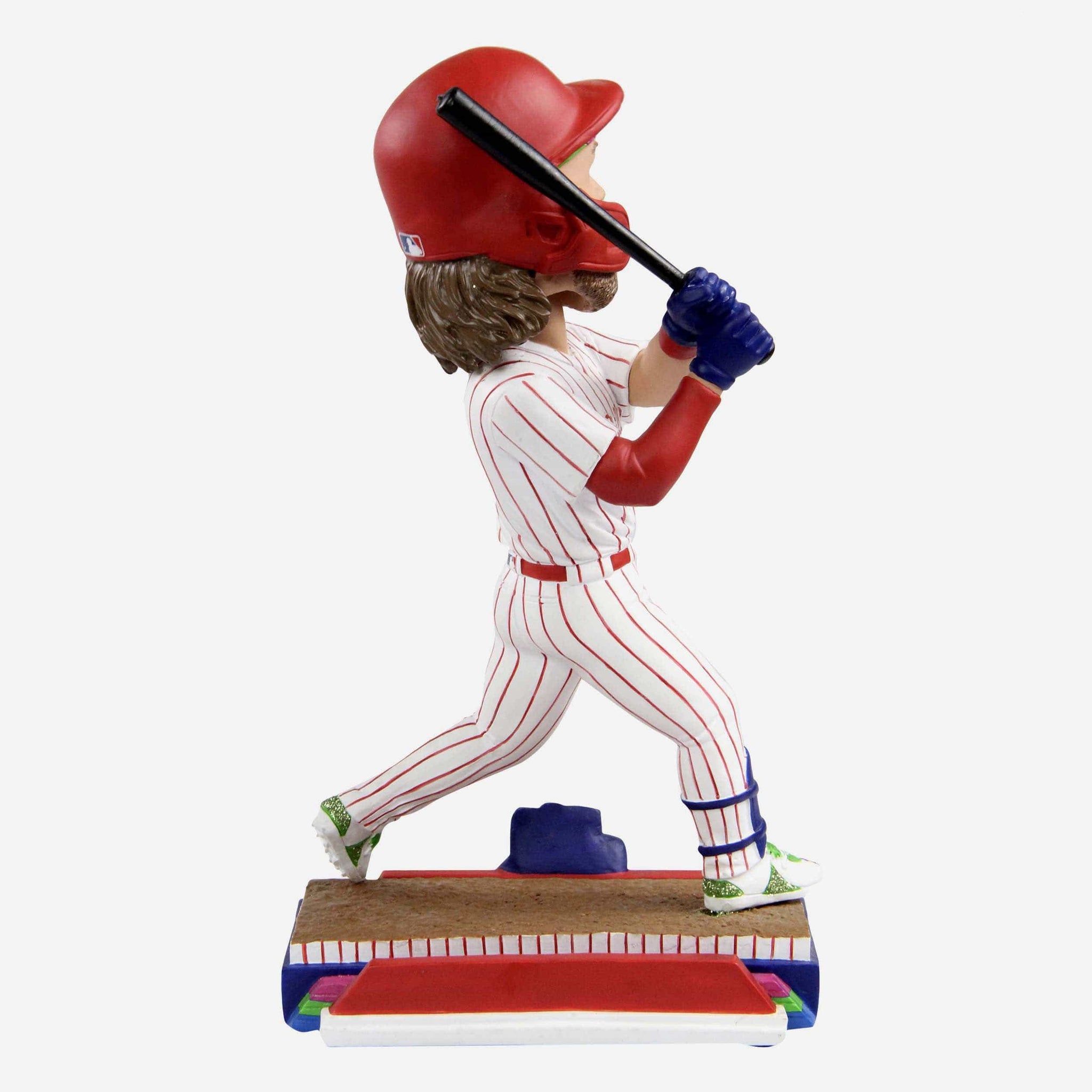 - Portrays Harper in an action pose, wearing his gameday uniform and swinging a bat, probably hitting yet another home run