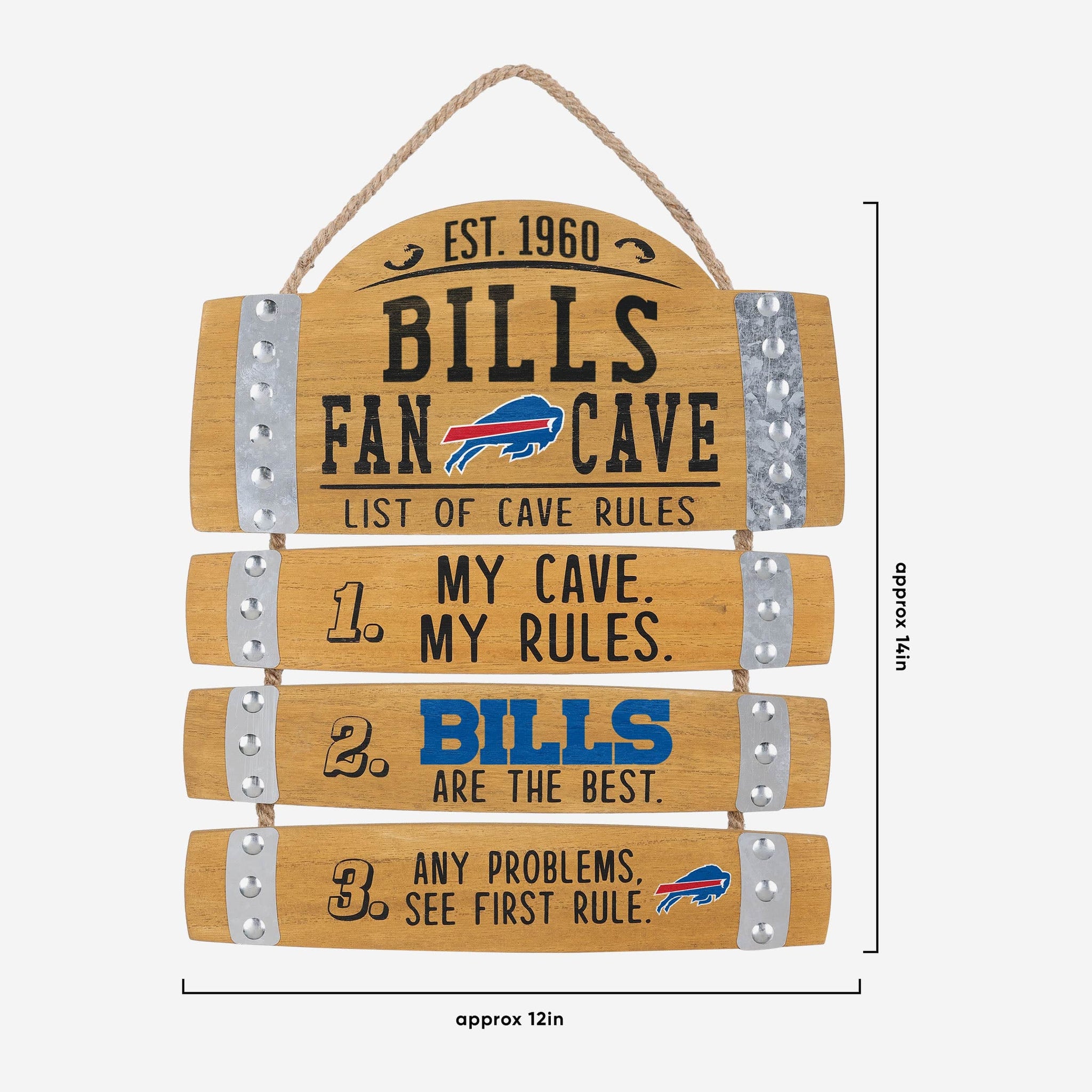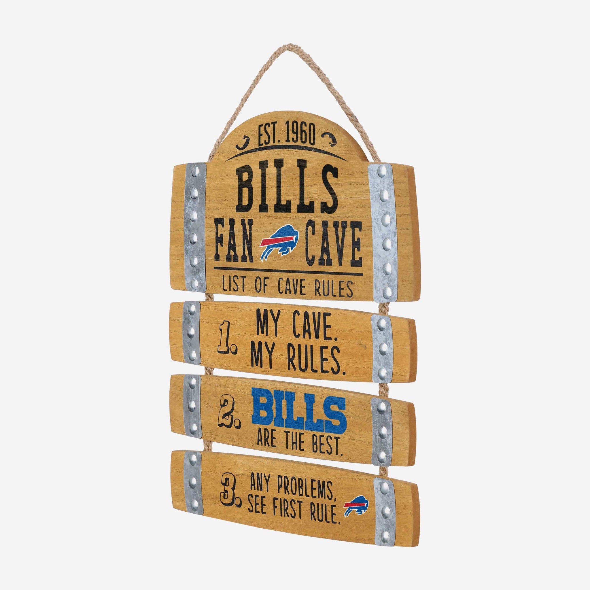No need to scrape the bottom of the barrel for some sweet fancave gear. All you need to do is check out this Buffalo Bills Barrel Slat Mancave Sign.