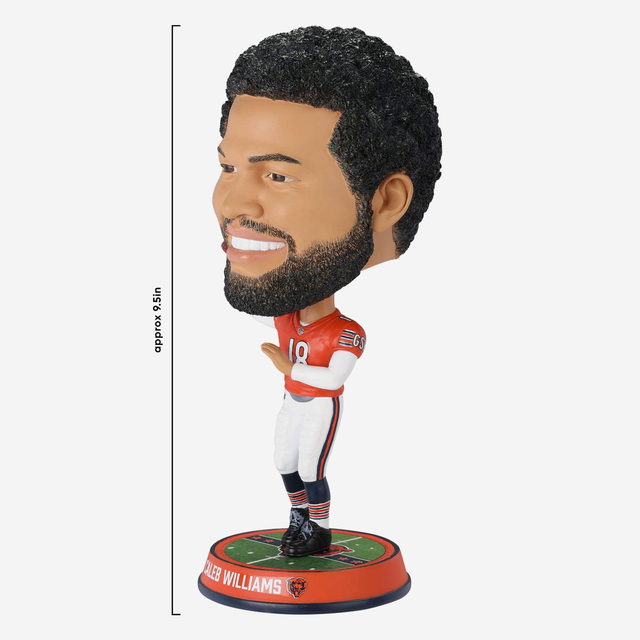 The Windy City has a new star QB! Gear up for gridiron glory with the Caleb Williams Chicago Bears Orange Jersey Field Stripe Bighead Bobblehead.
