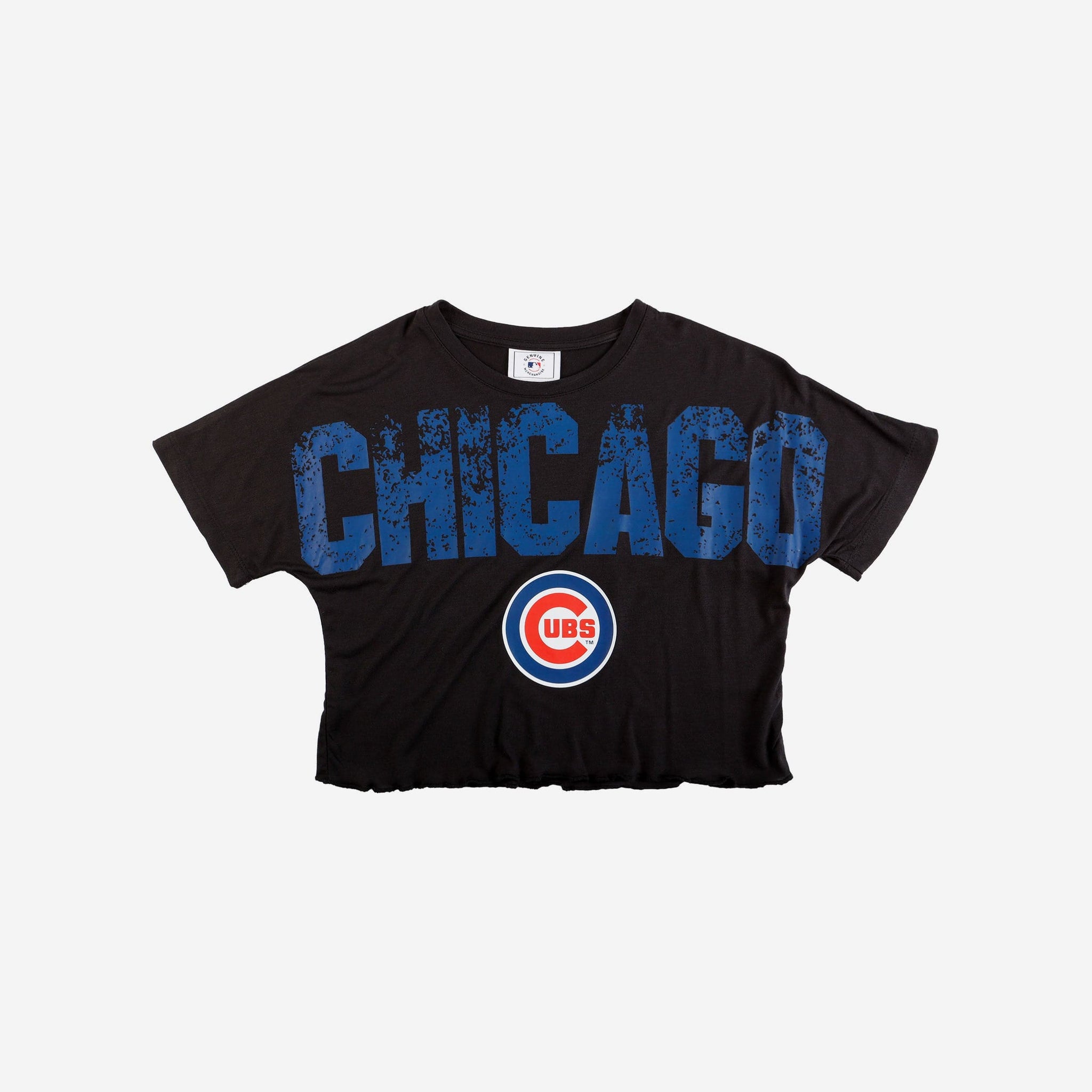 Chicago Cubs Womens Petite Distressed Wordmark Crop Top FOCO S - FOCO.com