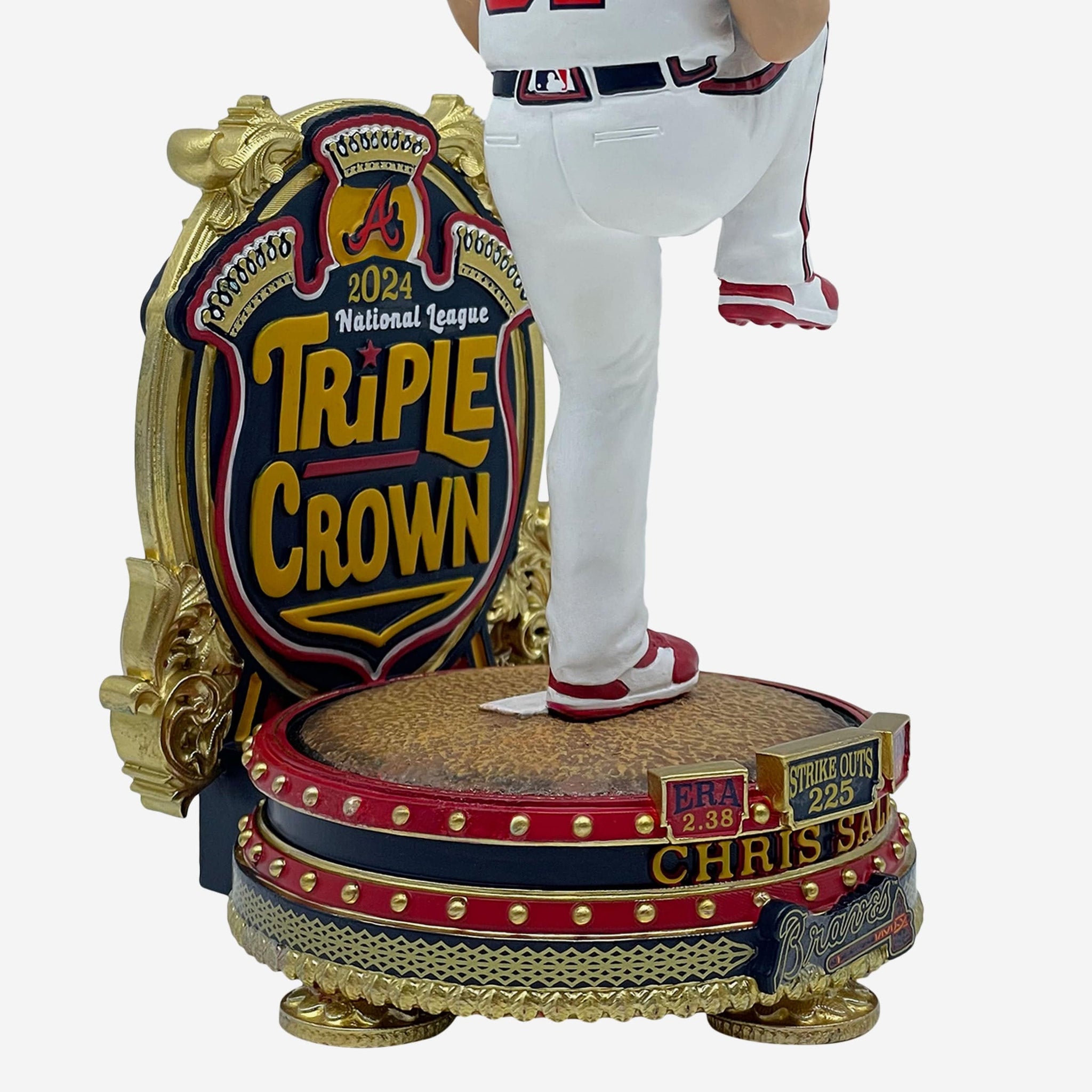 225 Strikeouts. 18 wins. 2.38 ERA. Crown the king of the mound in your collection with this Chris Sale Atlanta Braves 2024 Triple Crown Bobblehead.