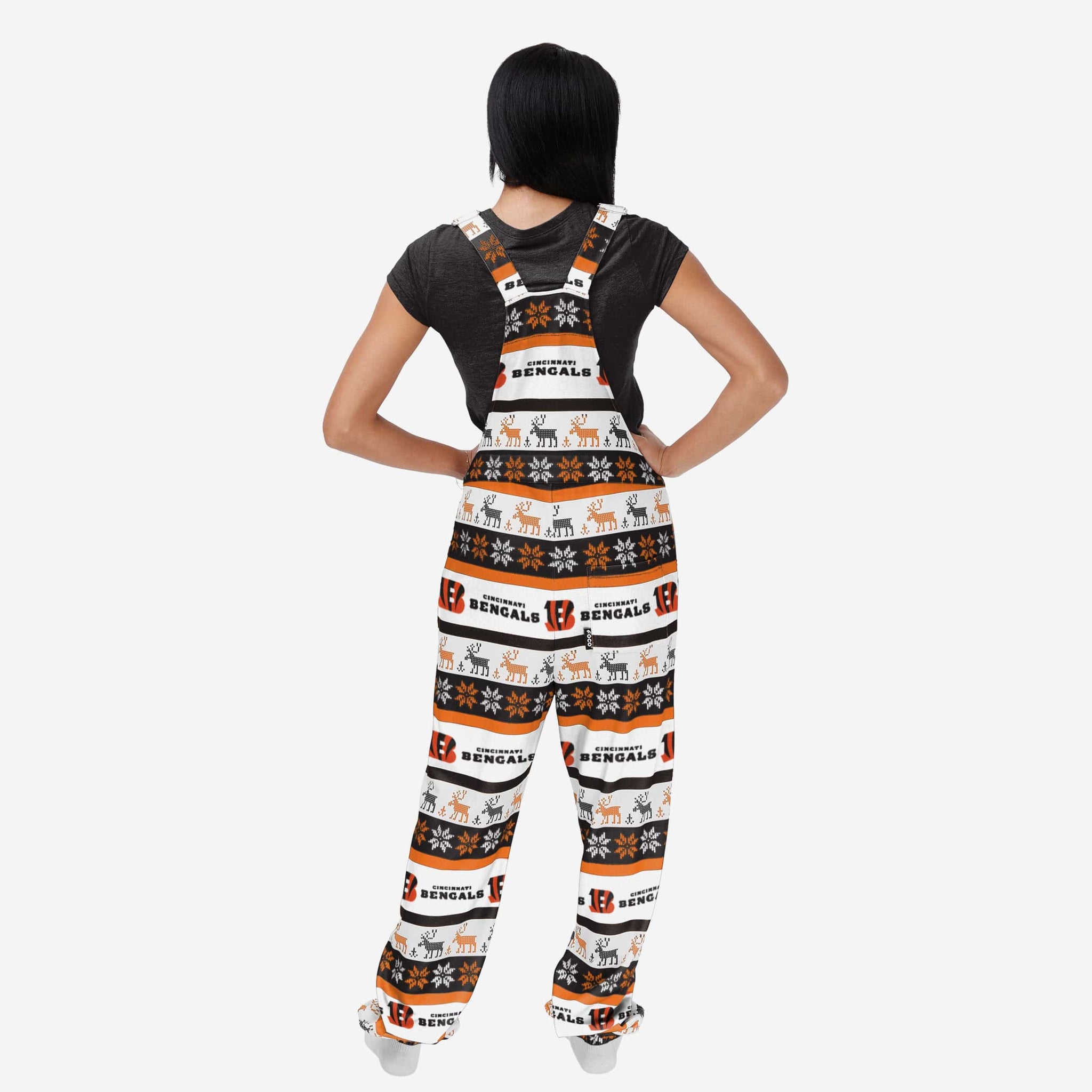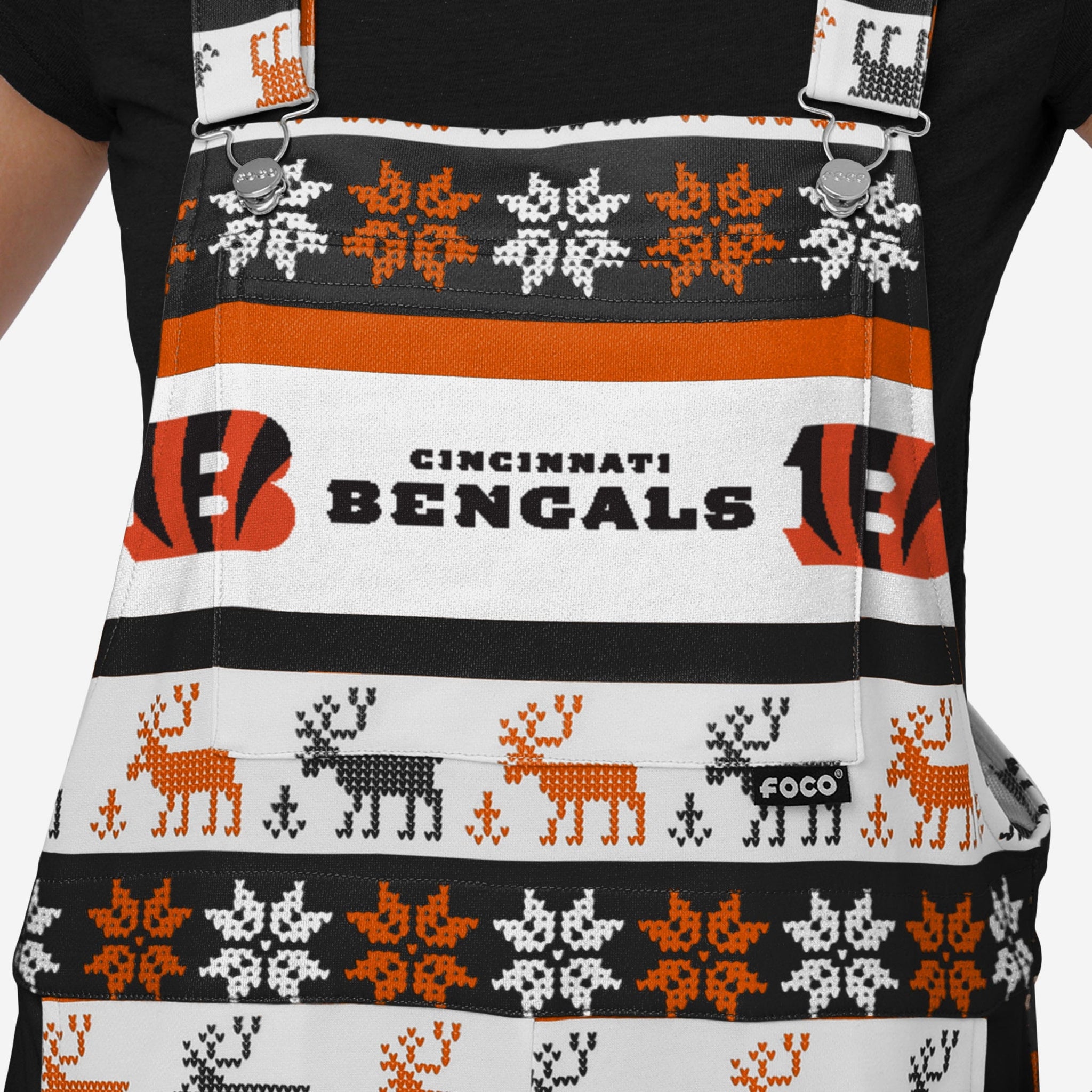 Show your team spirit in these stylish and comfortable Cincinnati Bengals Women's Ugly Home Gating Bib Overalls. With their all-over team-colored design and bold team logo display, these overalls are the perfect way to show your support for the Cincinnati Bengals while showing off some beautiful style akin to your favorite ugly sweater that's perfect for the holidays, but will help you stand out year-round.