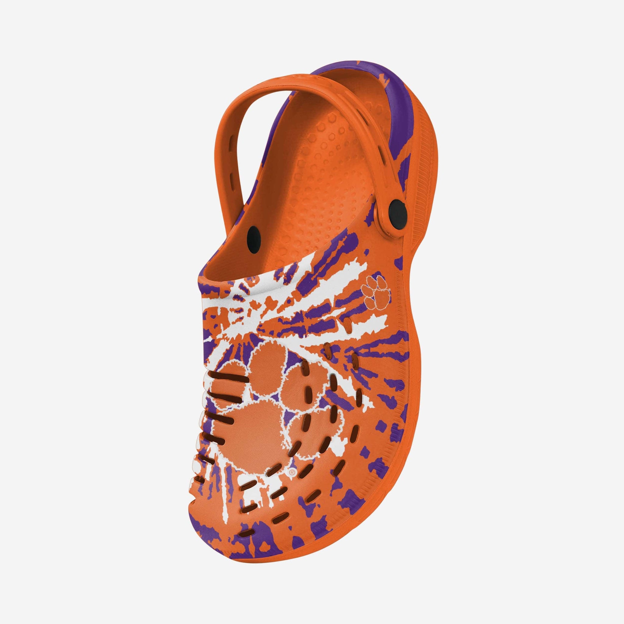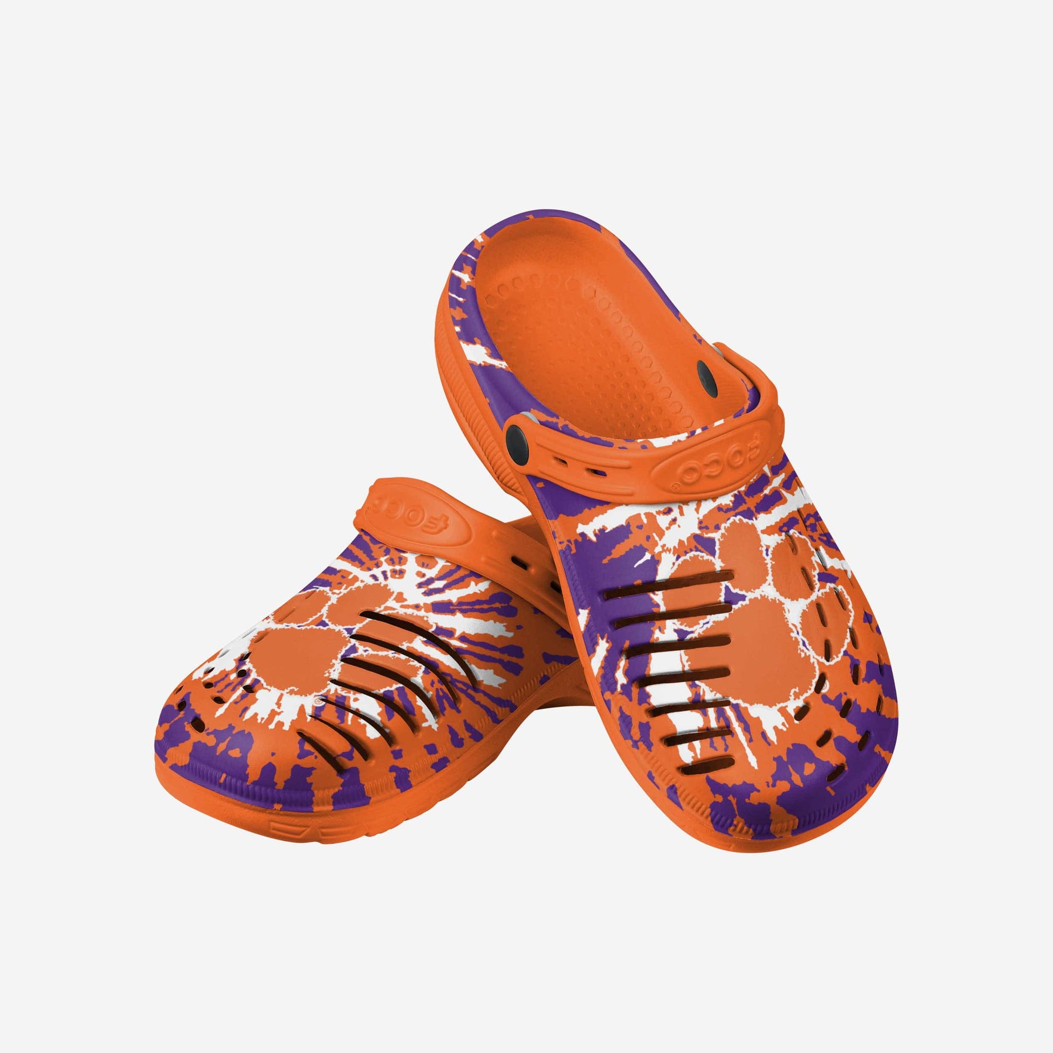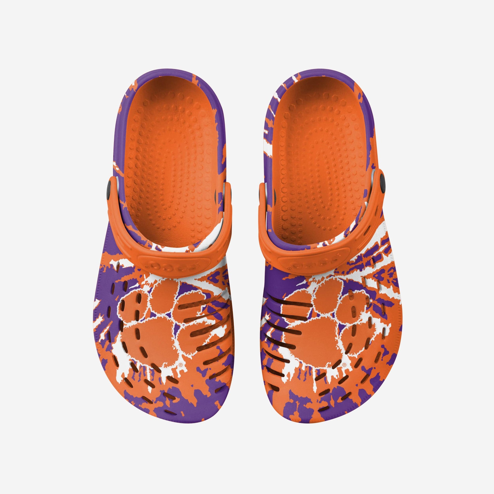 Enjoy a heaping helping of groovy goodness by standing out in these Clemson Tigers Tie-Dye Clogs with Straps.