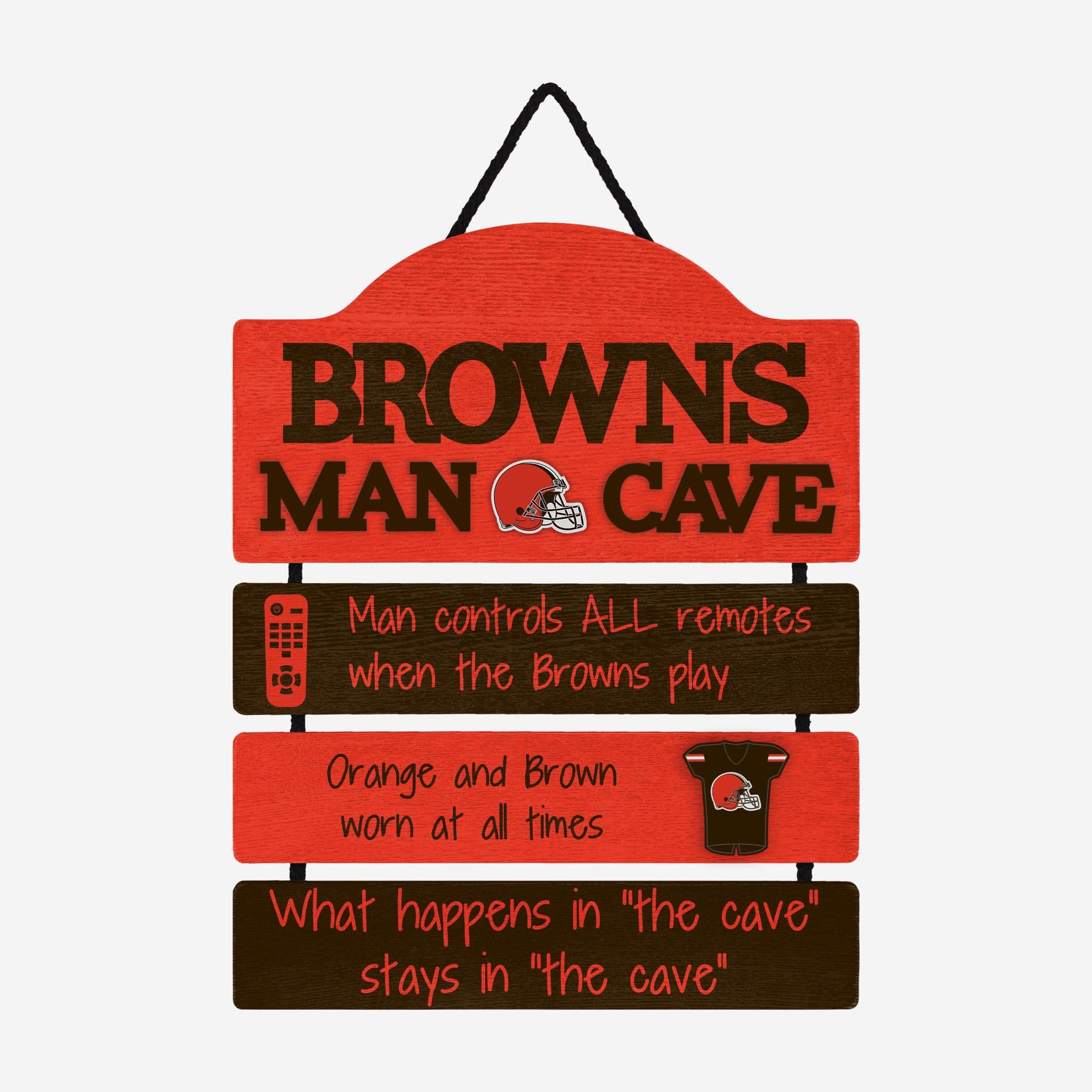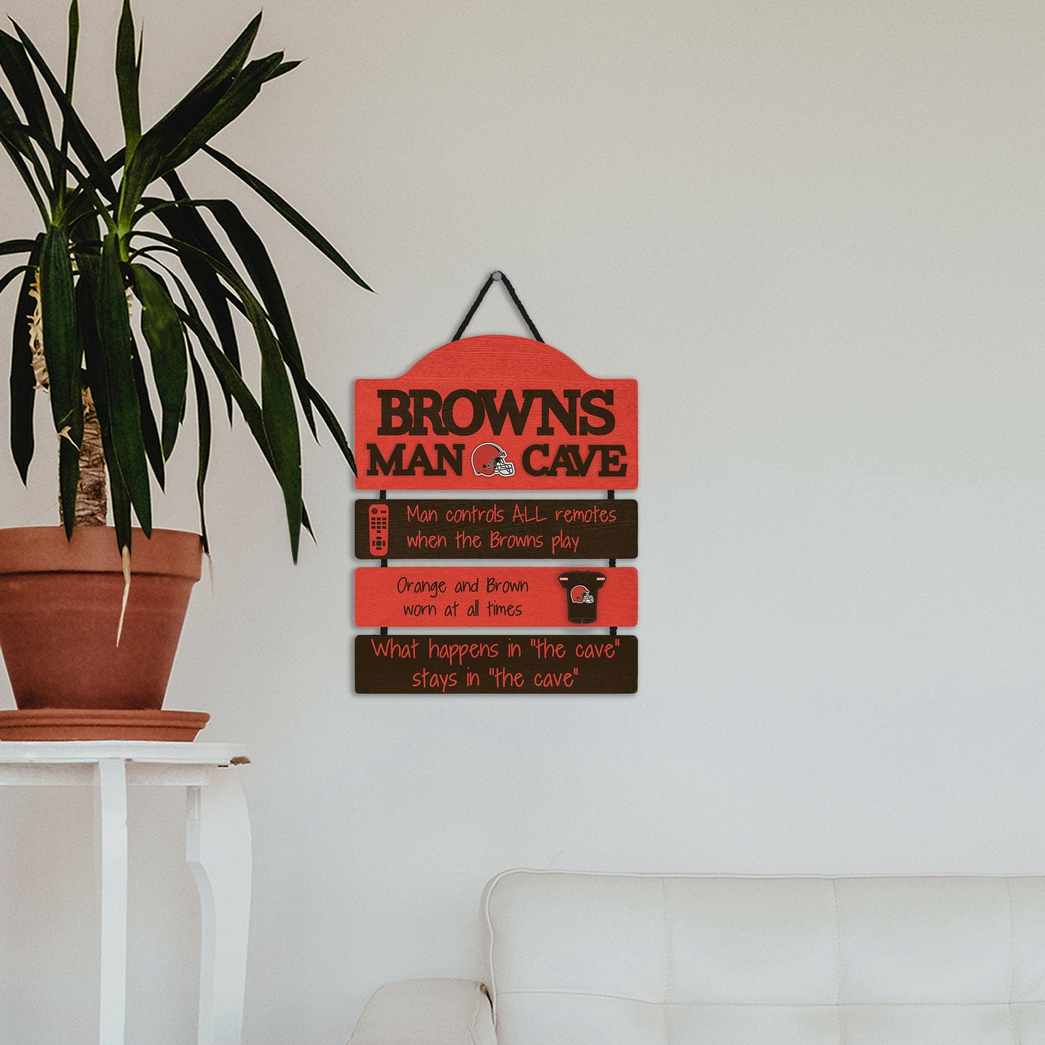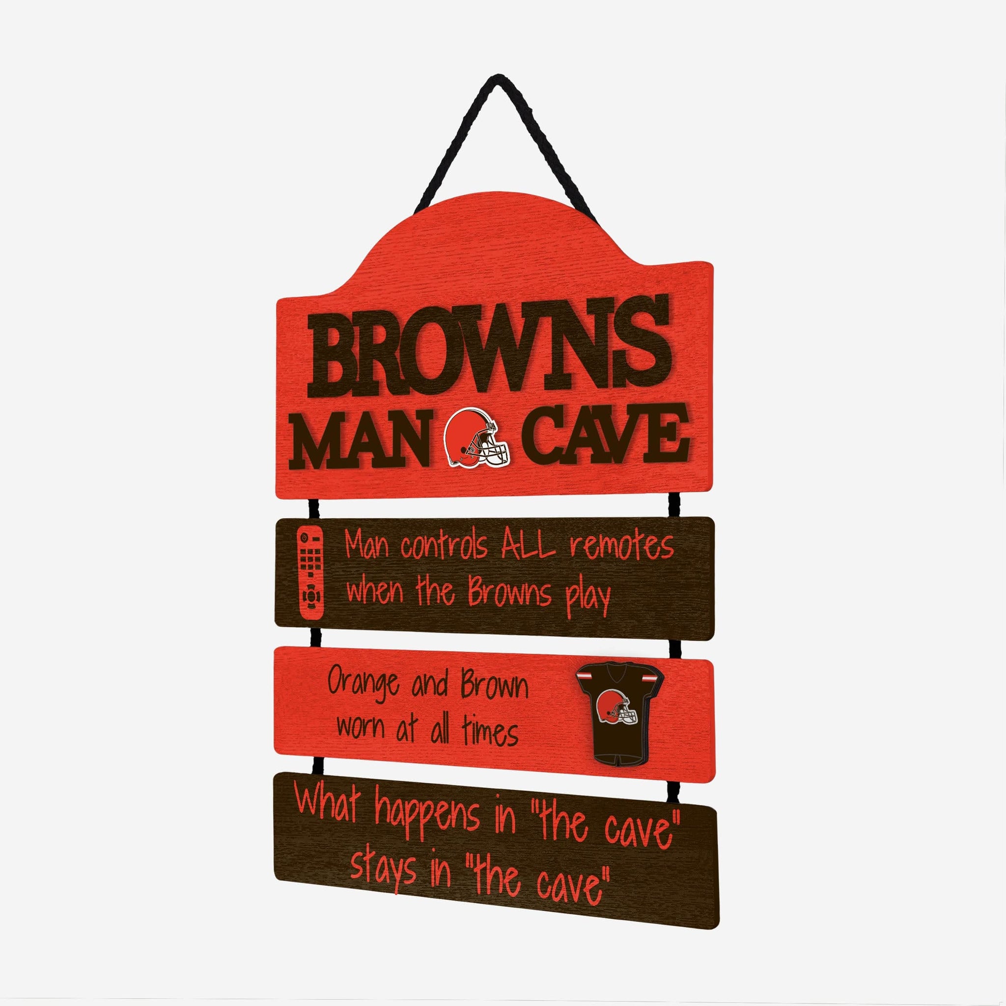 So, you're hosting the big watch party, and want to make sure you've decorated enough to impress your fellow fans. We've got you covered. This Cleveland Browns Mancave Sign lets everyone know who the fan in charge is, and gives your home field plenty of advantage.