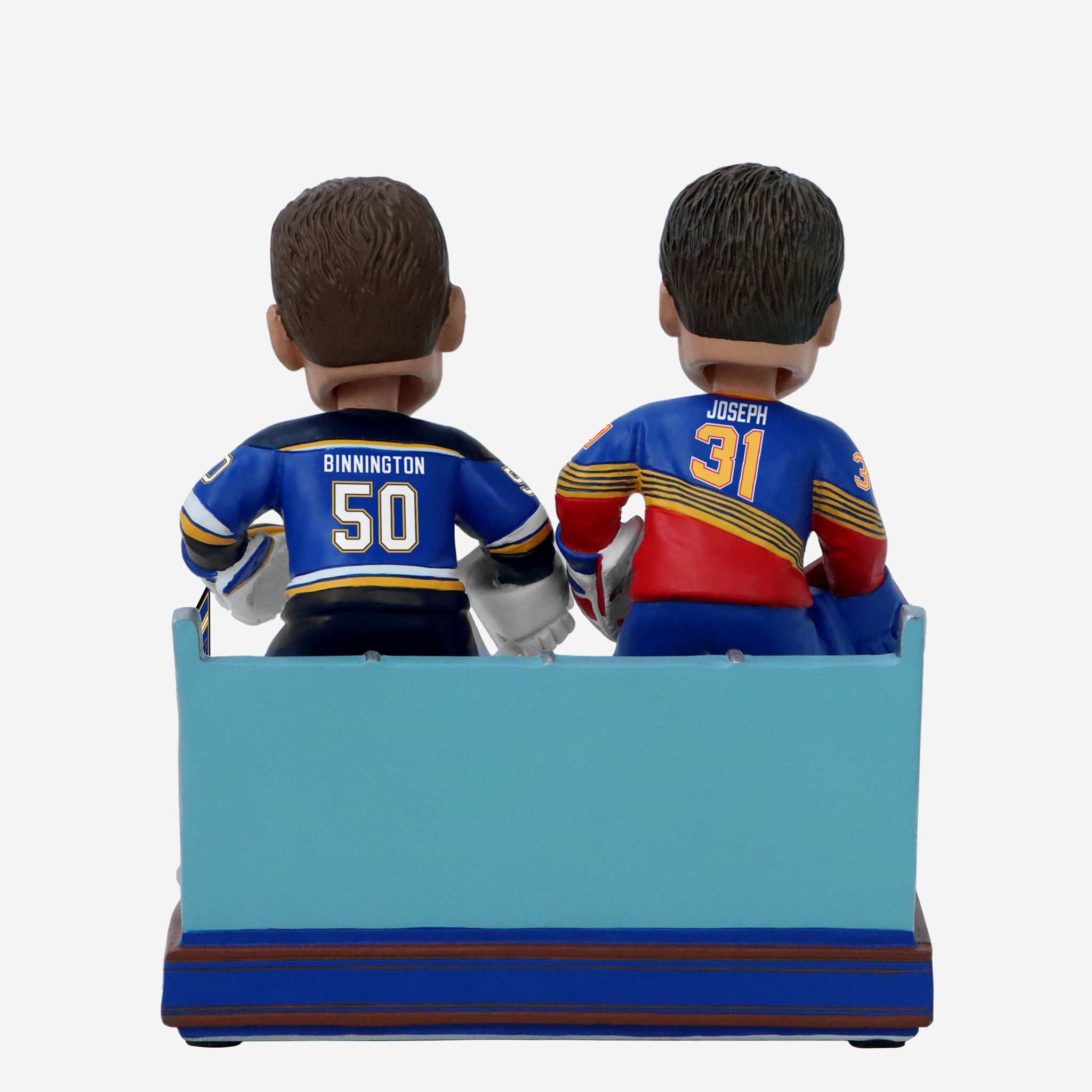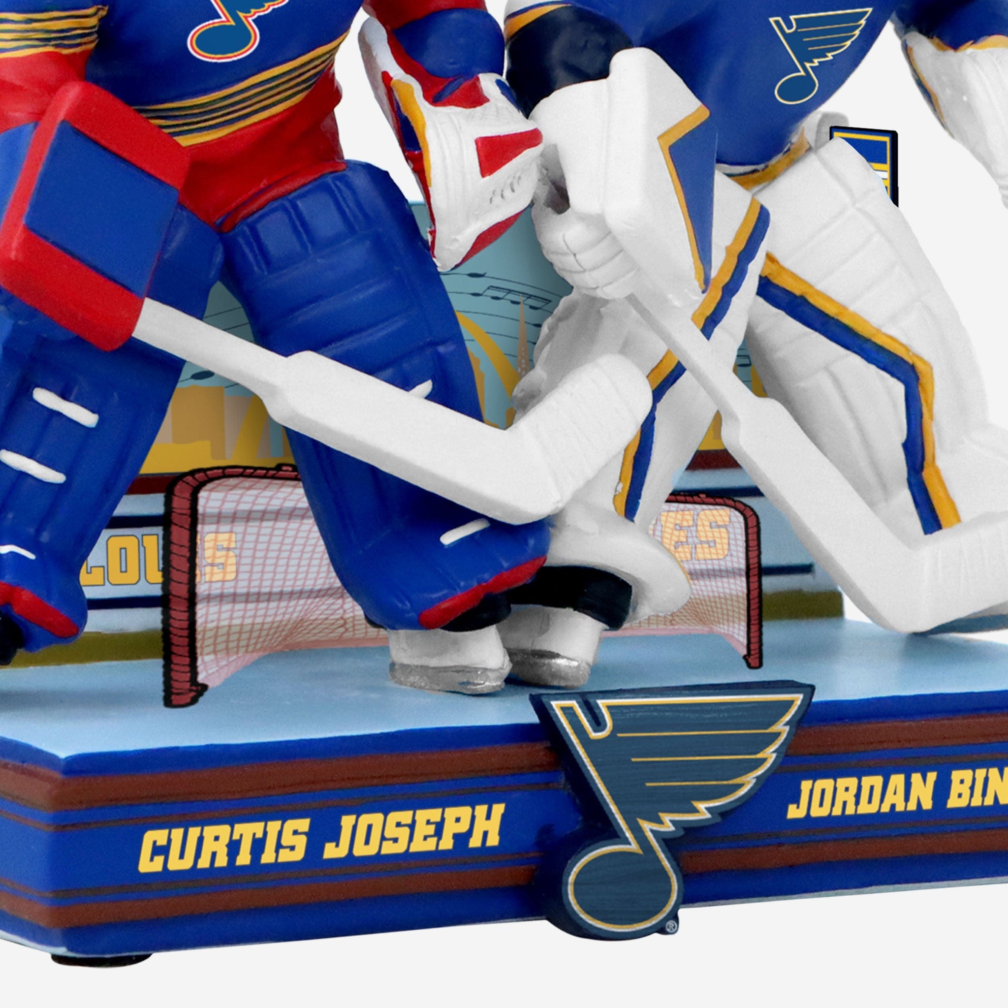 Your fancave is in for a timeless upgrade. Past meets present on the ice in the Gateway City with the Curtis Joseph & Jordan Binnington St. Louis Blues Then And Now Bobblehead.