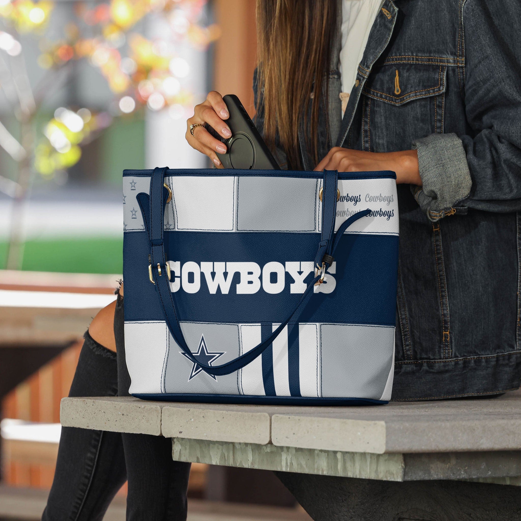 Ready for gameday and EVERY day. Take this Dallas Cowboys Printed Collage Tote everywhere you go and bring your team along for the journey.
