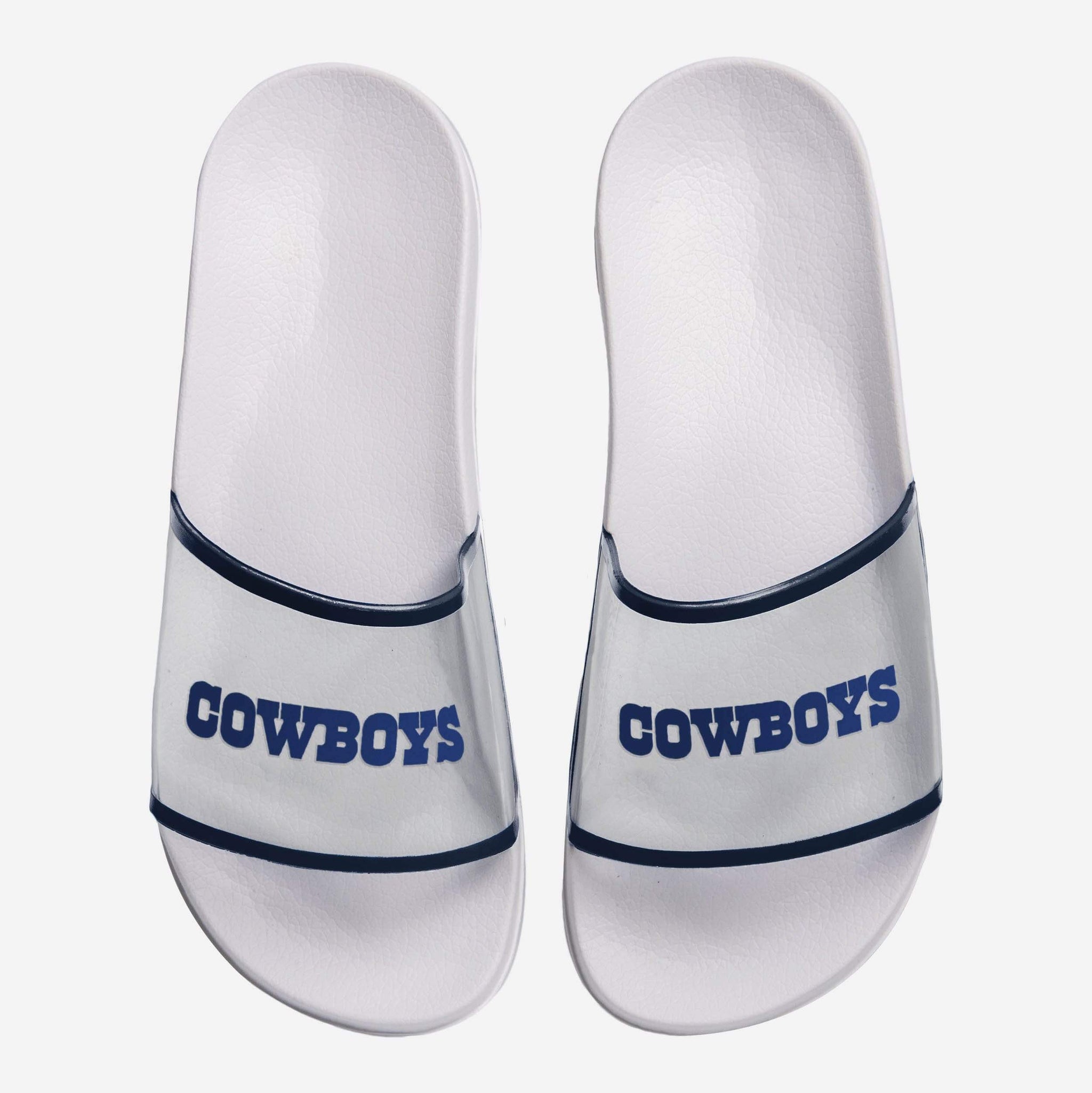 So, you're trying to find the best way to show off your team spirit, and look good while you do it. The answer is clear. Like, literally. As in, these Dallas Cowboys Clear Wordmark Slide Flip Flops.