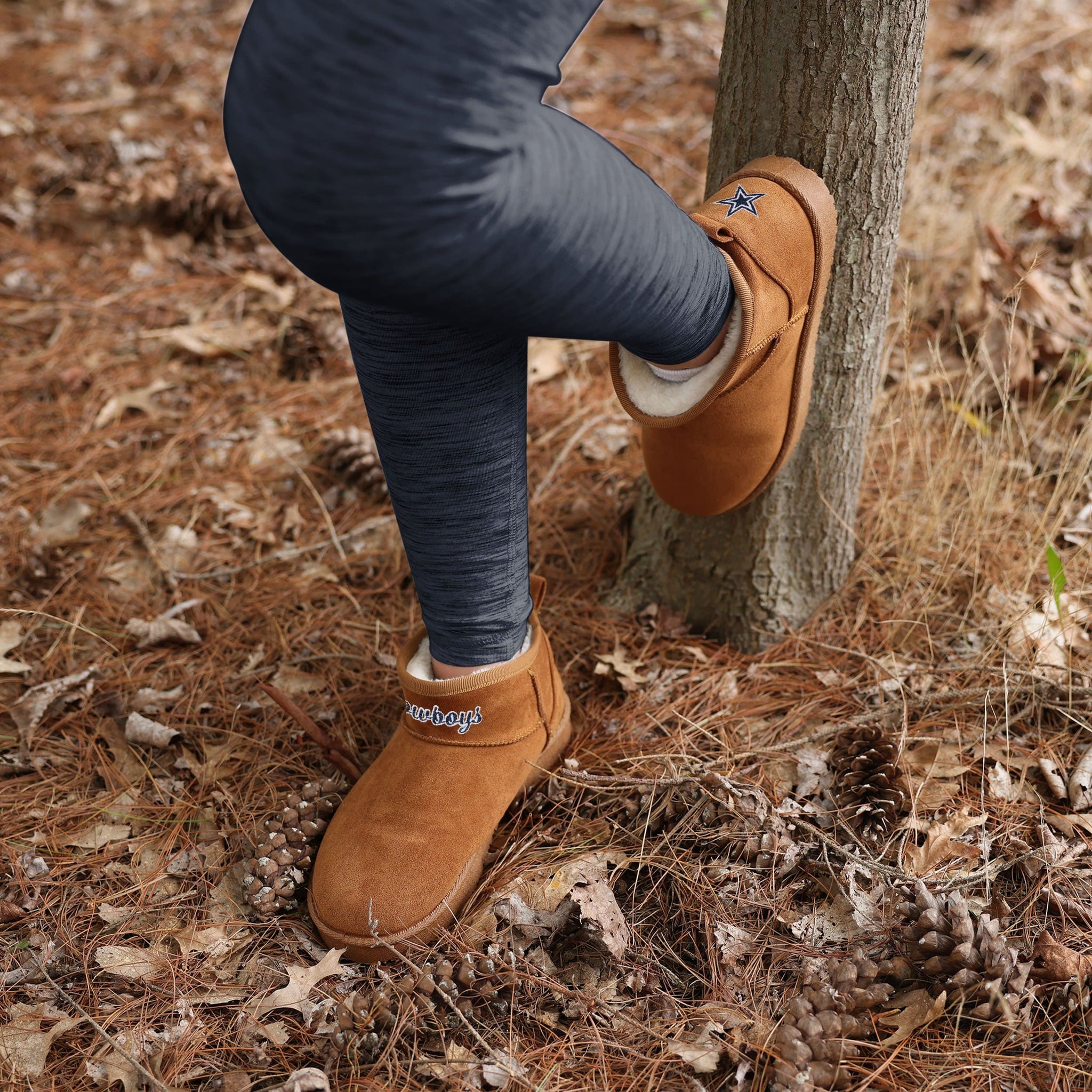 Give subpar style the boot! Fandom for your feet has never been more comfortable thanks to these Dallas Cowboys Team Logo Fuzzy Fan Boots!