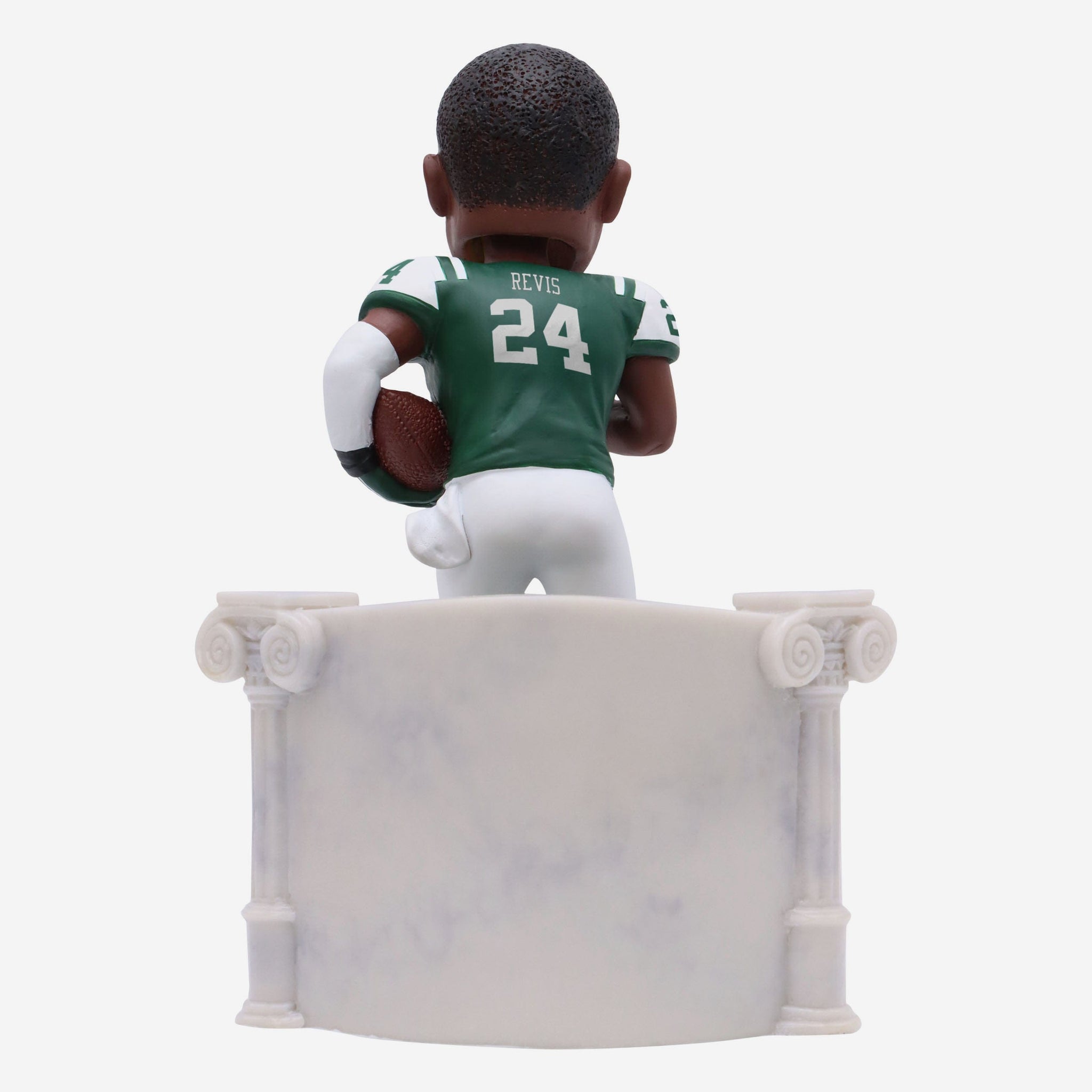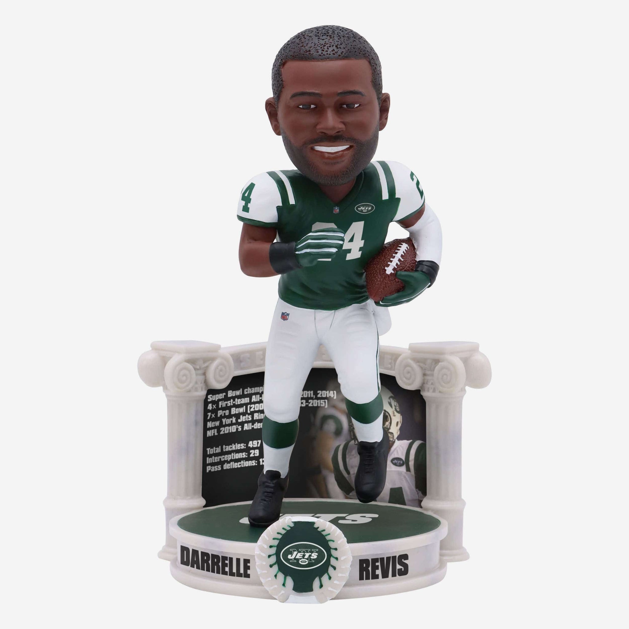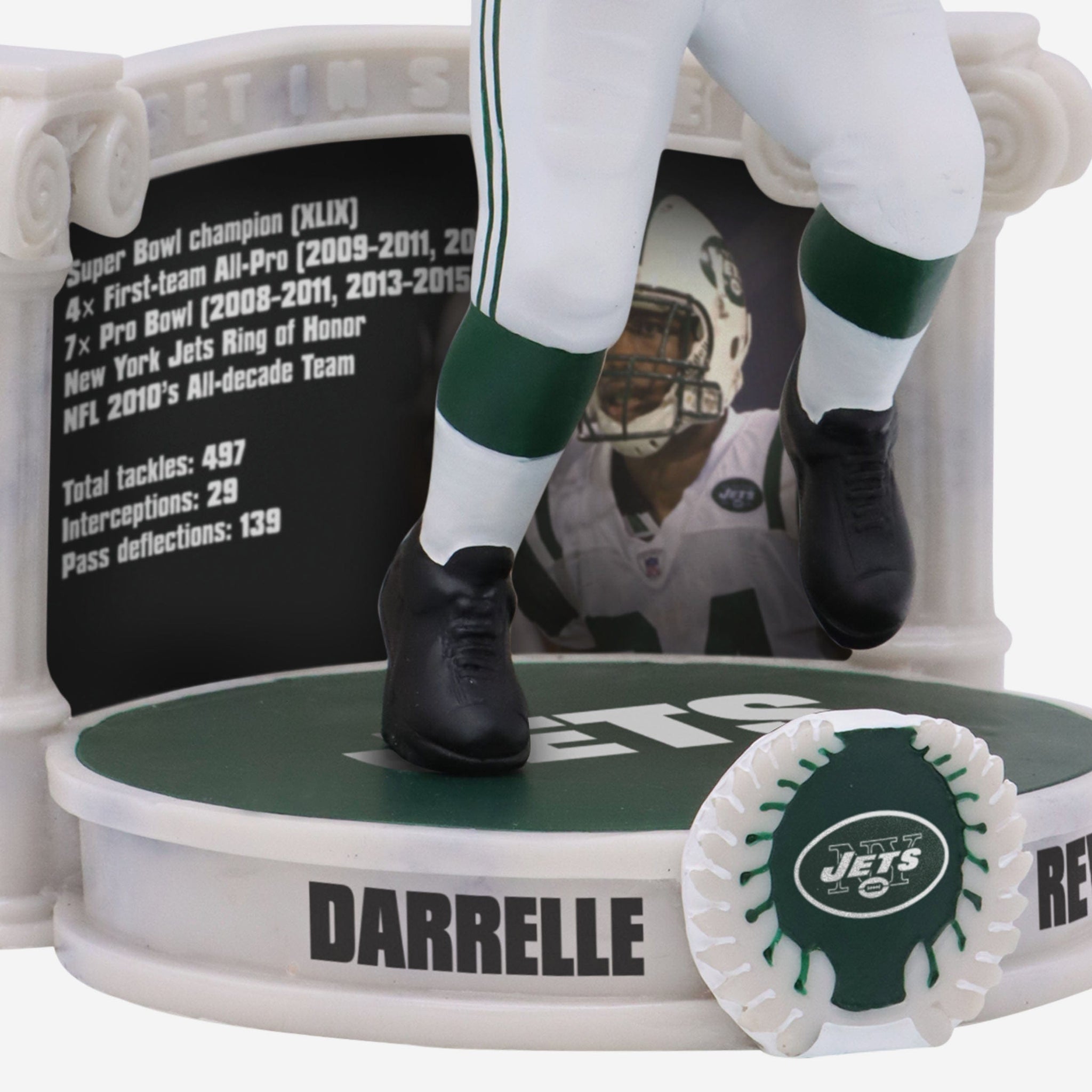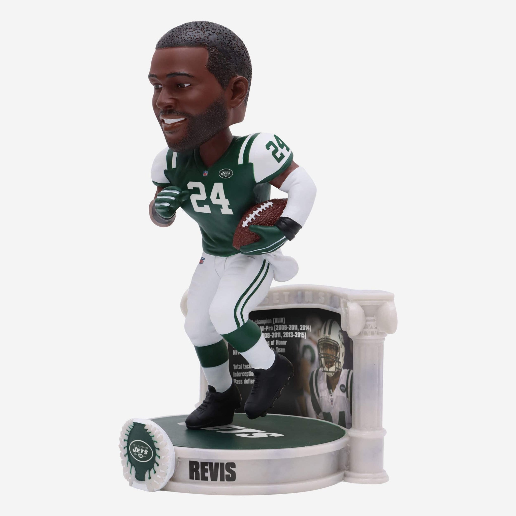 • Portrays Revis wearing his green gameday uniform in an action pose, ready to show off the skills that made him an all-time great