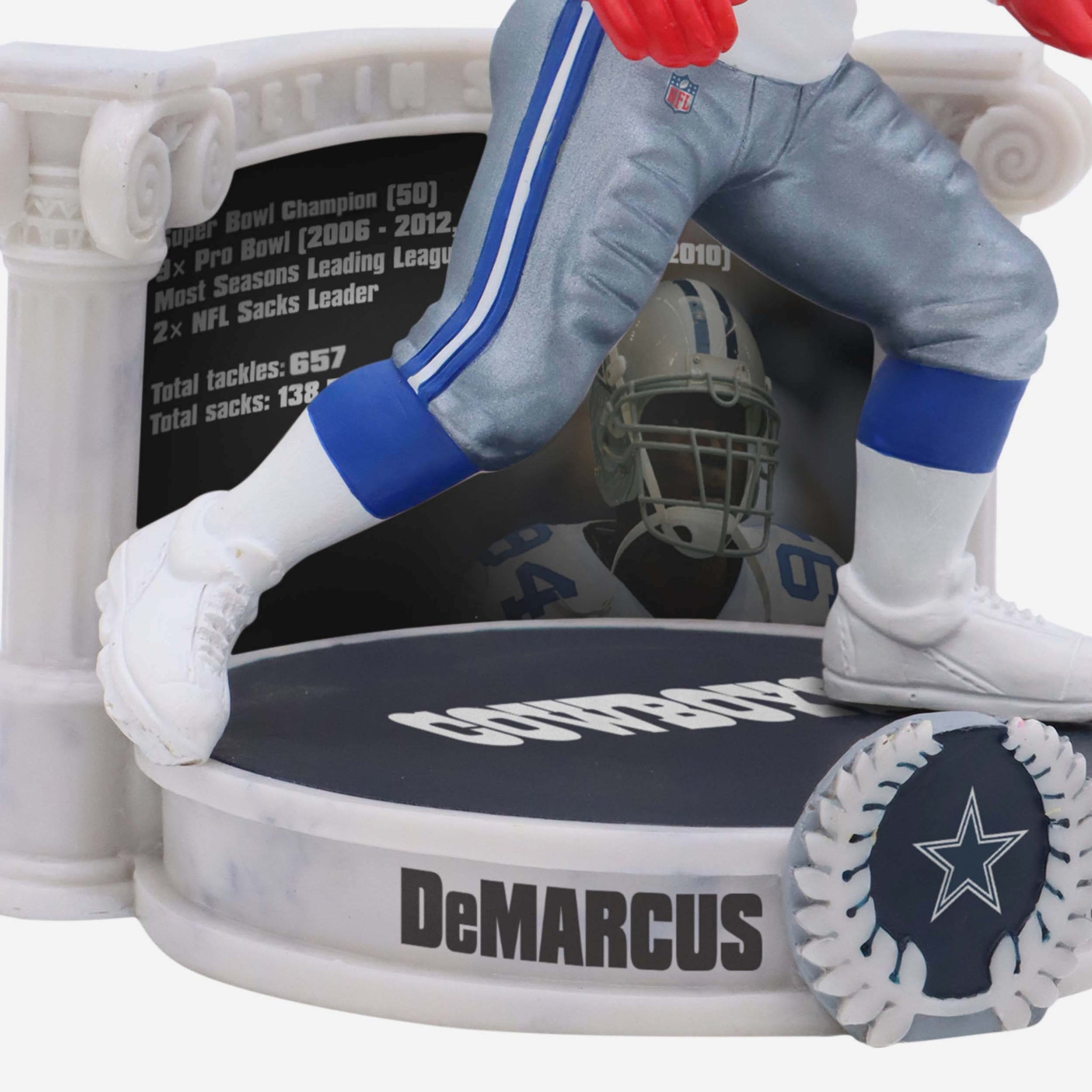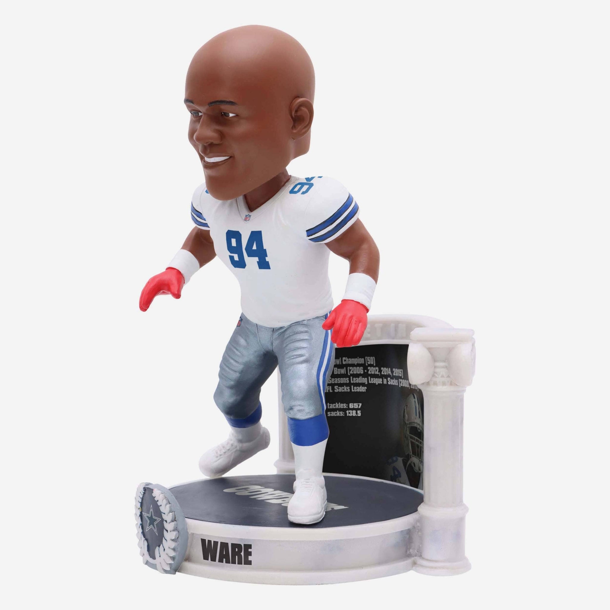 One of the greatest to ever set foot on the gridiron is ready to join your roster. Achieve legendary status with this DeMarcus Ware Dallas Cowboys Career Retrospective Bobblehead.