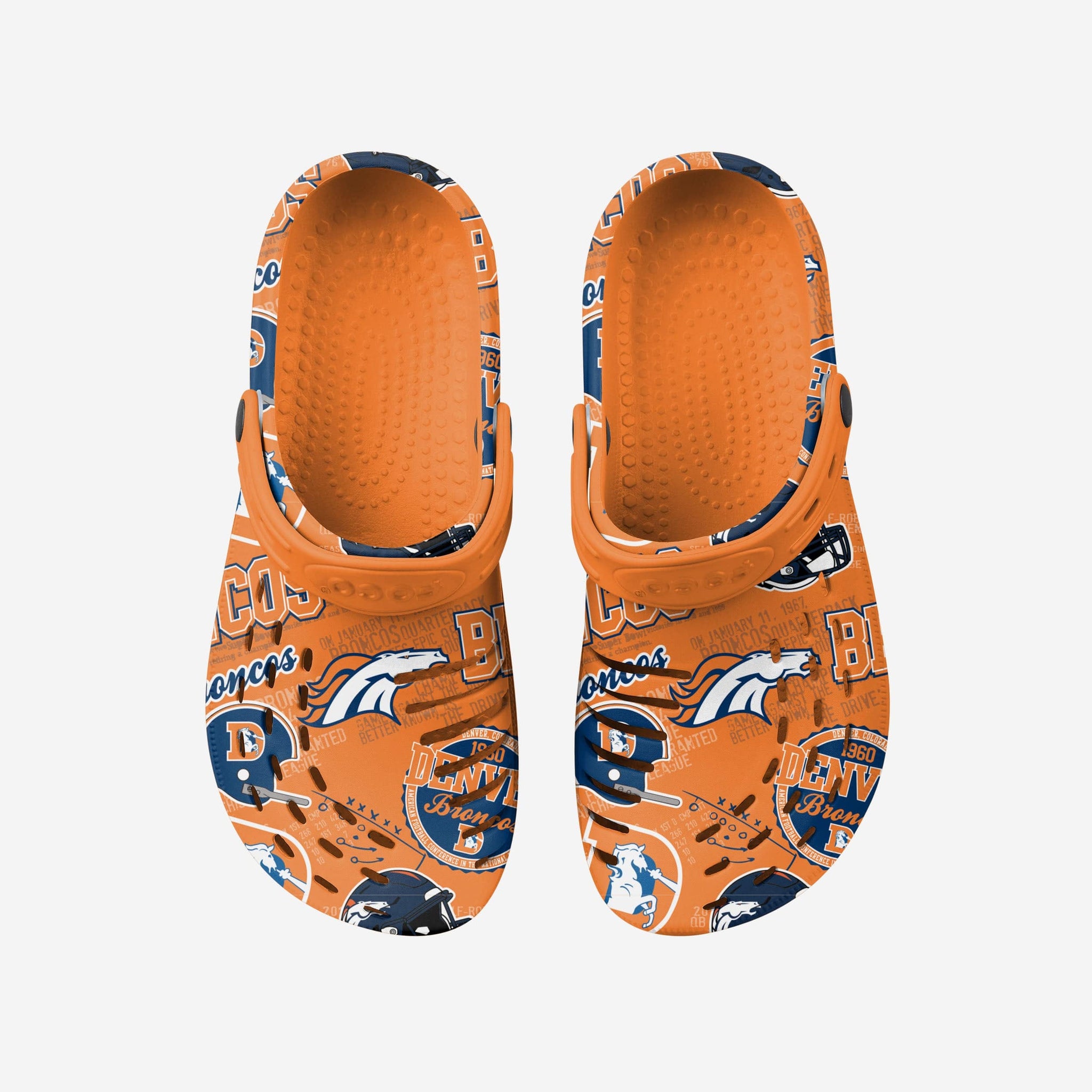 The Denver Broncos Historic Print Clogs with Straps are here to help you take a step into the time machine and celebrate your franchise's glorious history.