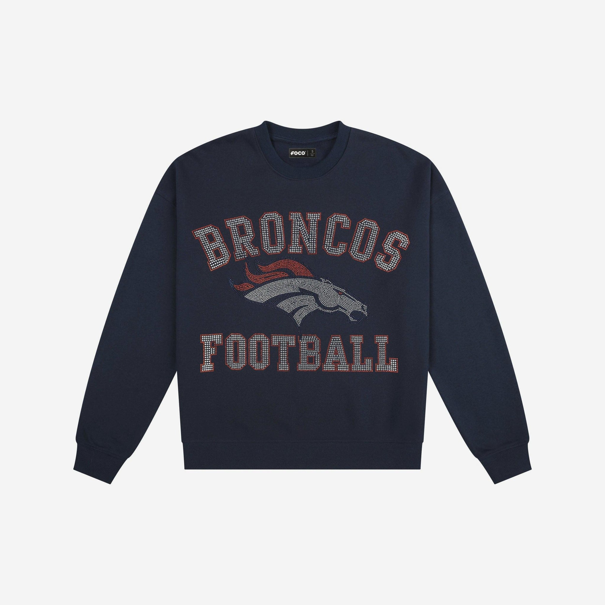Bling it on! It's time to turn up the twinkle and let your fan fit do the talking. This Denver Broncos Womens Rhinestone Logo Oversized Crew Neck Sweatshirt is made for those who like their cozy with a little extra shine. From game day to every day, it’s the perfect way to stay warm and wow-worthy.