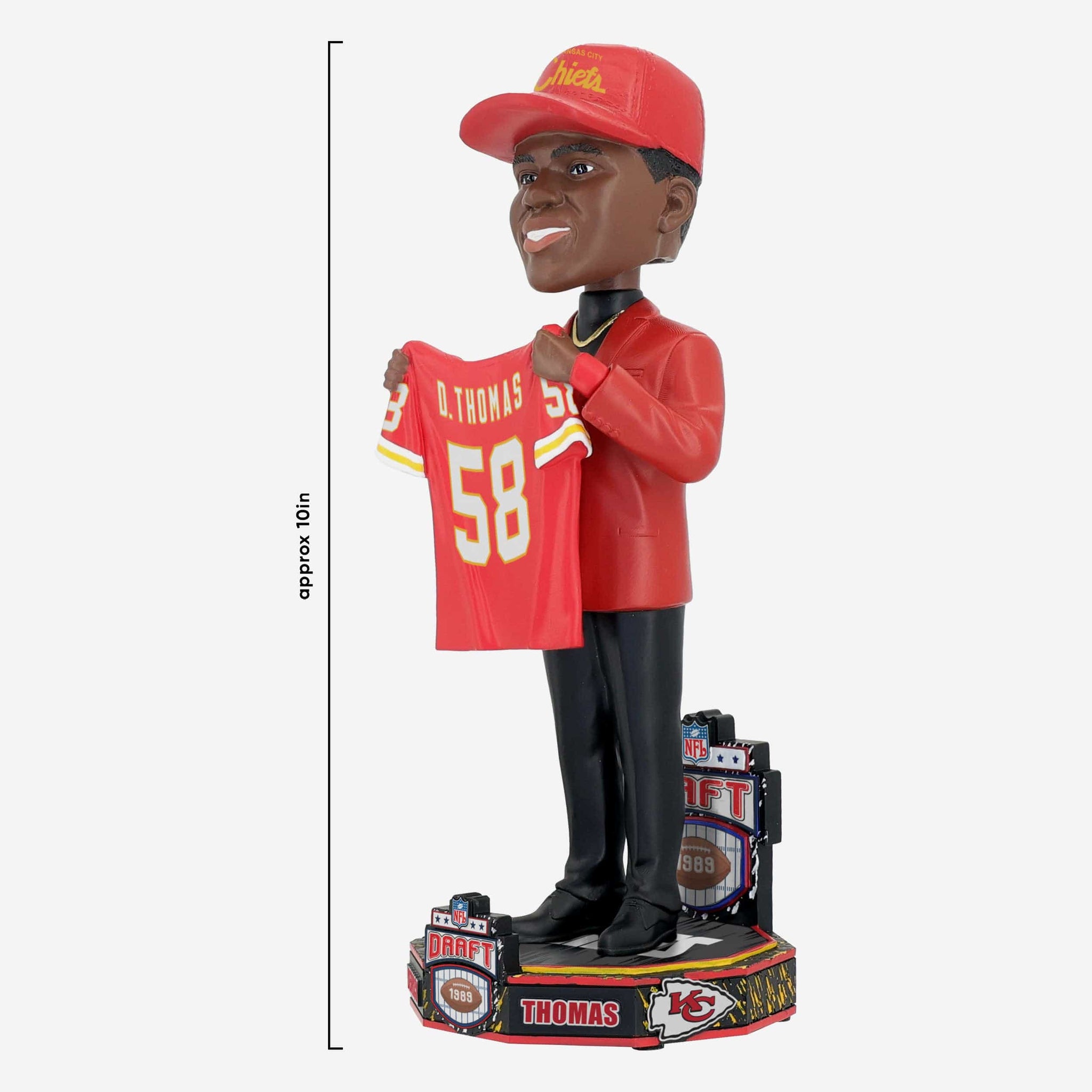 Every legend of the gridiron began their journey behind the podium. Show off how it all got started with the Derrick Thomas Kansas City Chiefs 1989 Draft Pick Bobblehead.