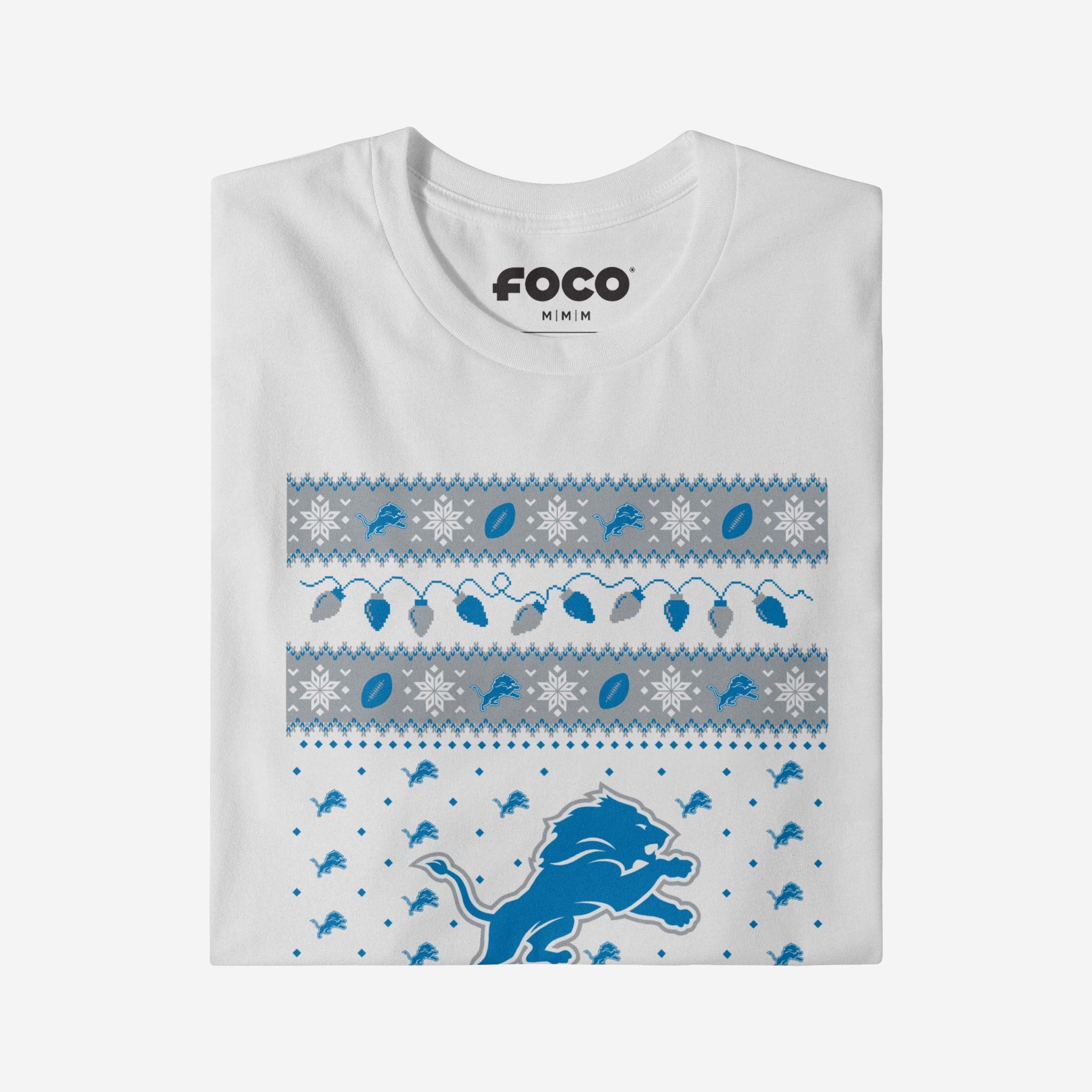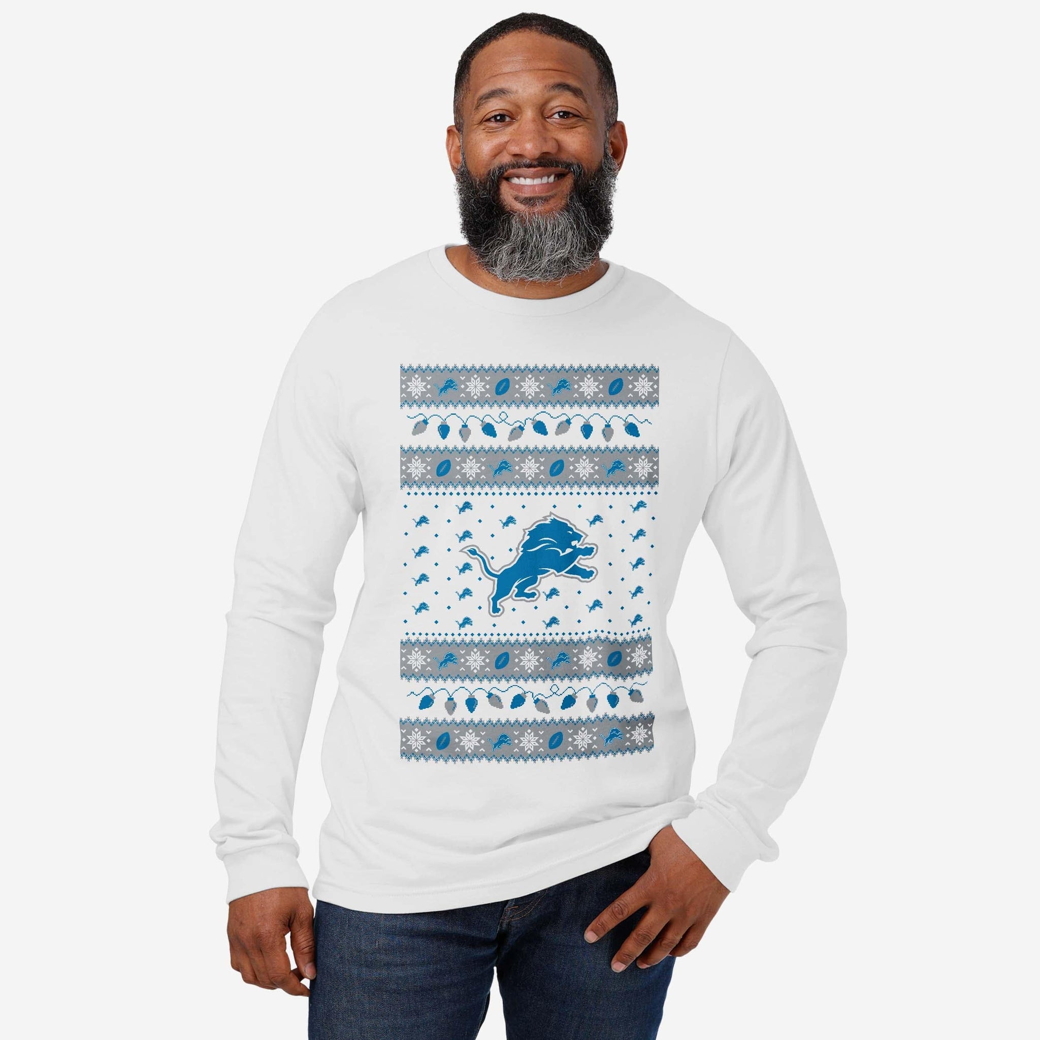 Santa's making a list, and he’s checking it twice! Prove that you’re the nicest fan around with the Detroit Lions Holiday Lights Sweater Long Sleeve T-Shirt.