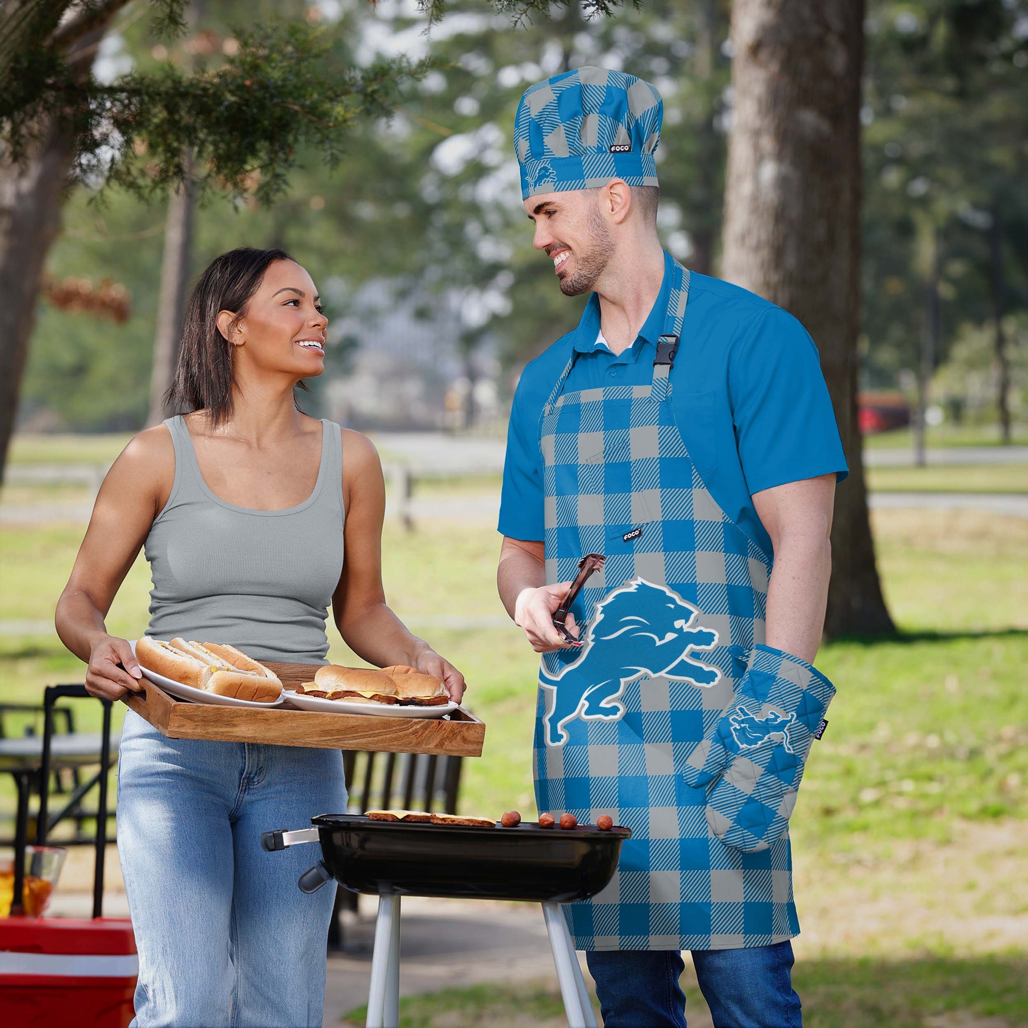 Get ready to serve up the best food in the greatest fan fit. From the kitchen, to the table, to game day, do it all in style with the Detroit Lions Plaid Chef Set.