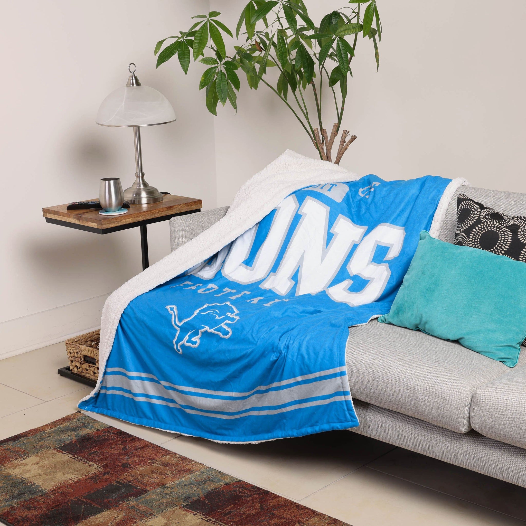 Detroit Lions Team Property Sherpa Plush Throw Blanket