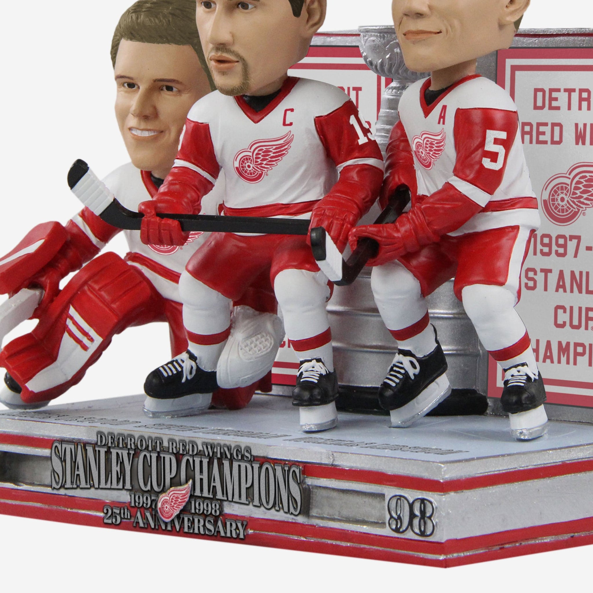 Watch out for flying octopi, Hockeytown. Steve Yzerman, Nicklas Lidstrom, and Chris Osgood are back and ready to celebrate back-to-back championships with this Detroit Red Wings 1998 Stanley Cup Champions 25th Anniversary Celebration Triple Bobblehead.