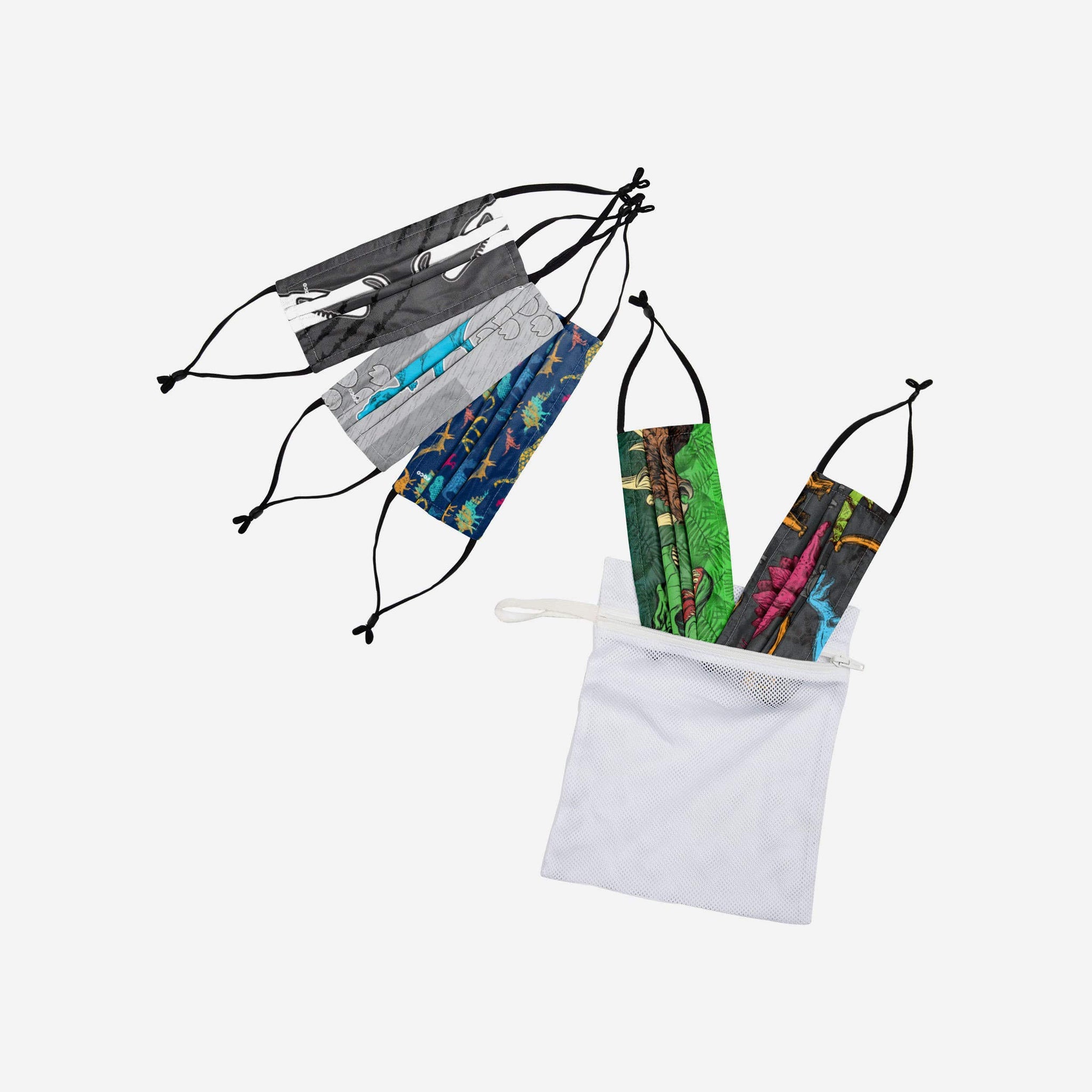 Cover up in style in this Dinosaur Pack Youth Adjustable 5 Pack Face Covering!