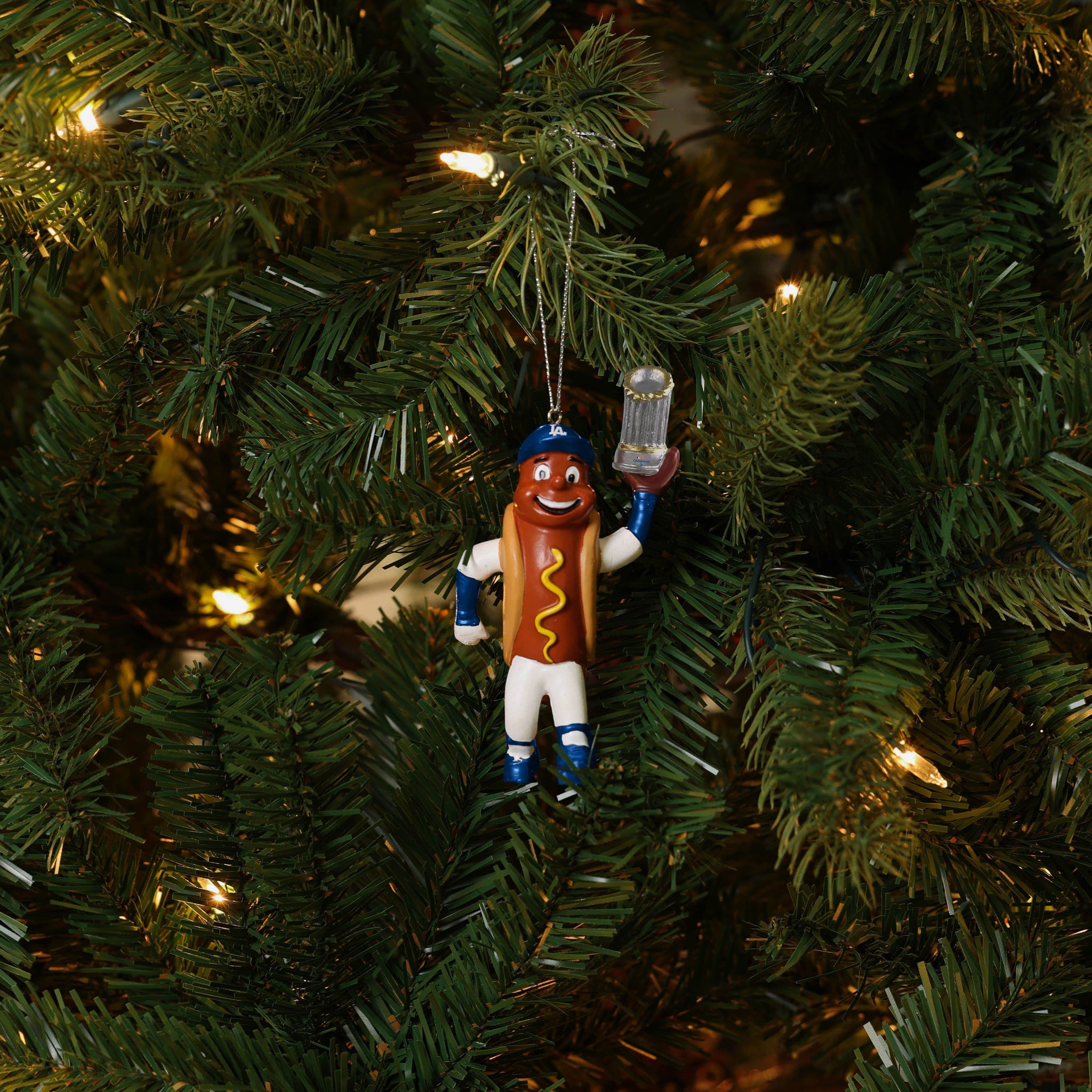 Deck the halls like a champ. This Dodger Dog Los Angeles Dodgers 2024 World Series Champions Mascot Ornament is here to trim the tree with victory.