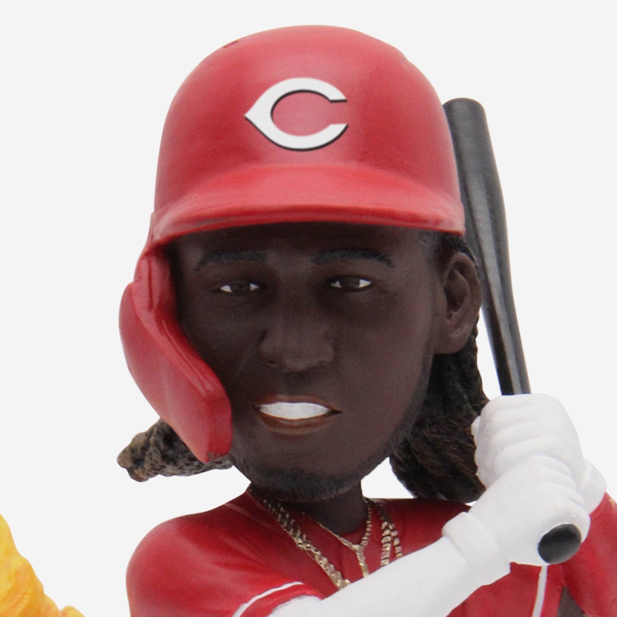 • Portrays De La Cruz wearing his red gameday uniform in a batting action pose, ready to come through in the clutch