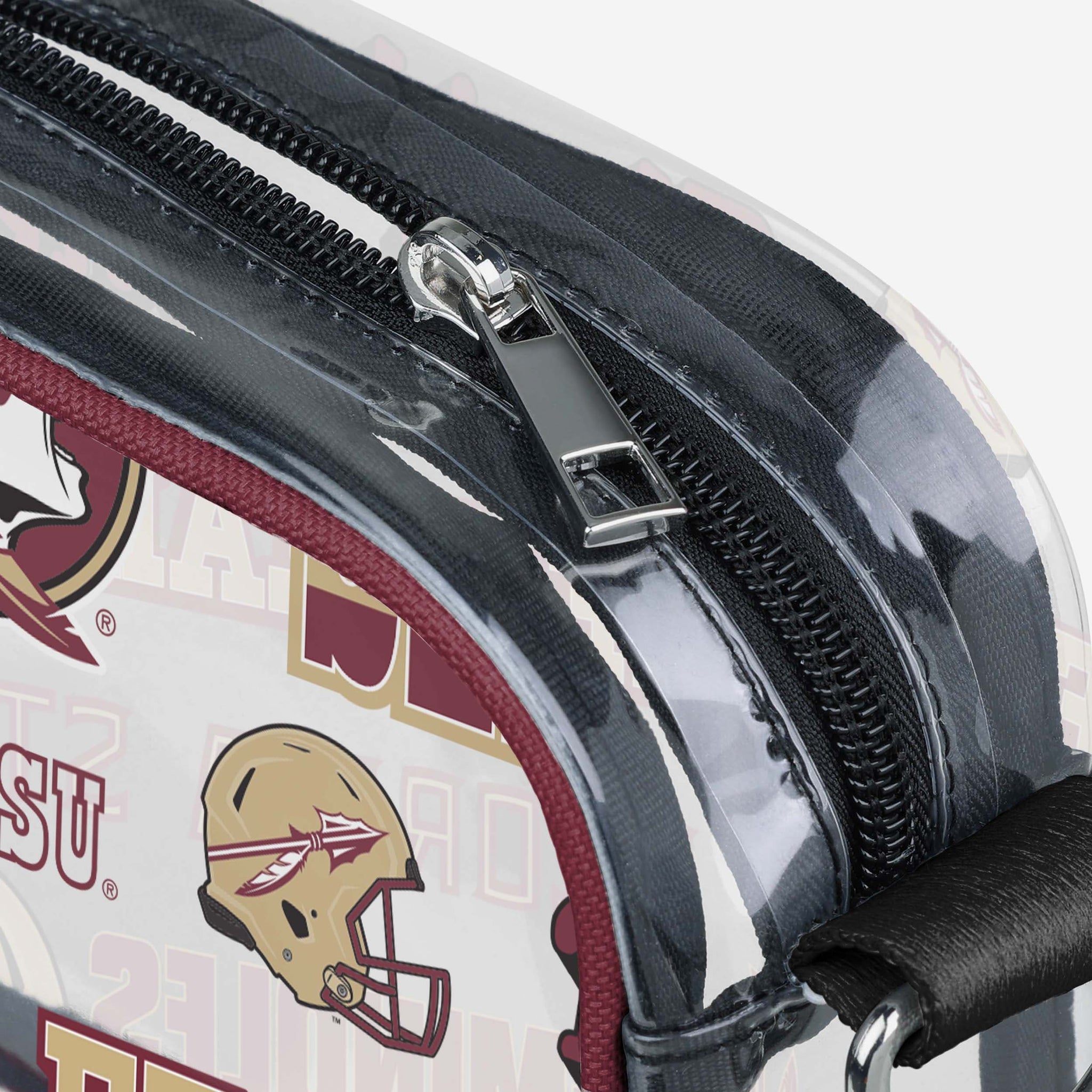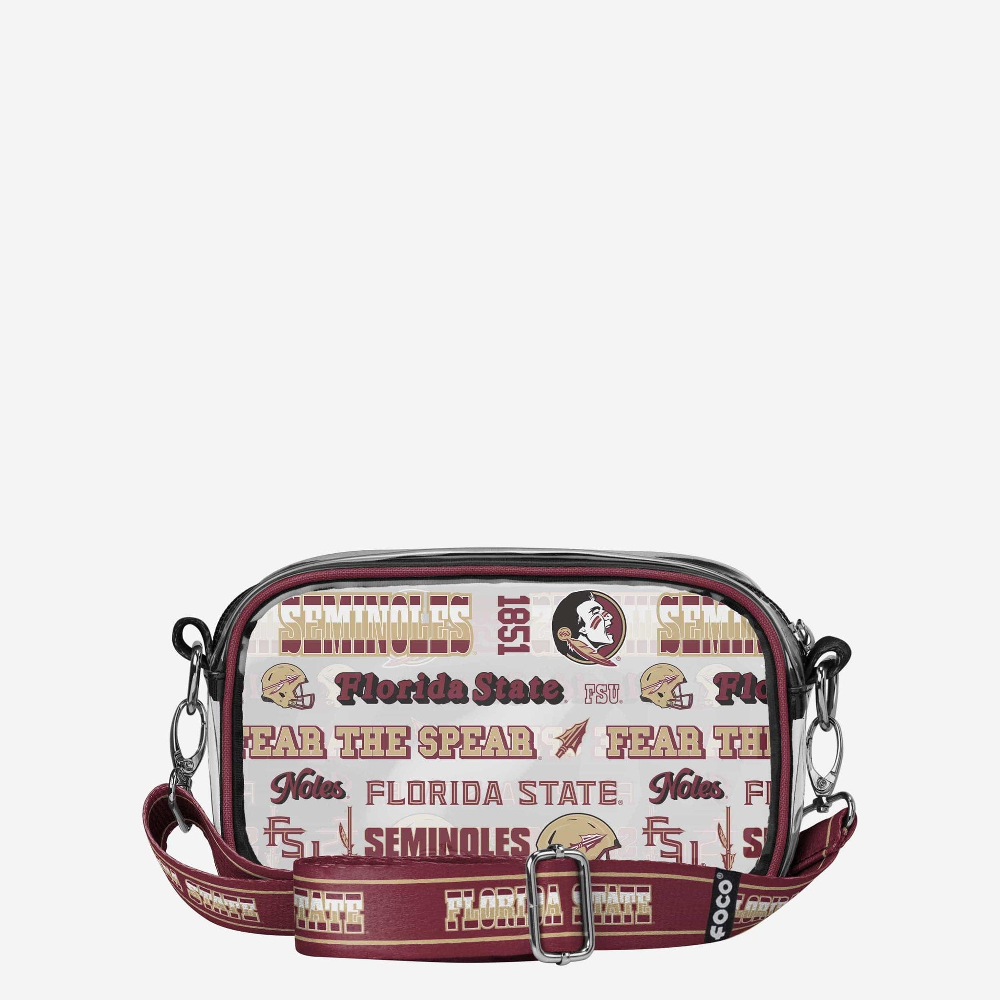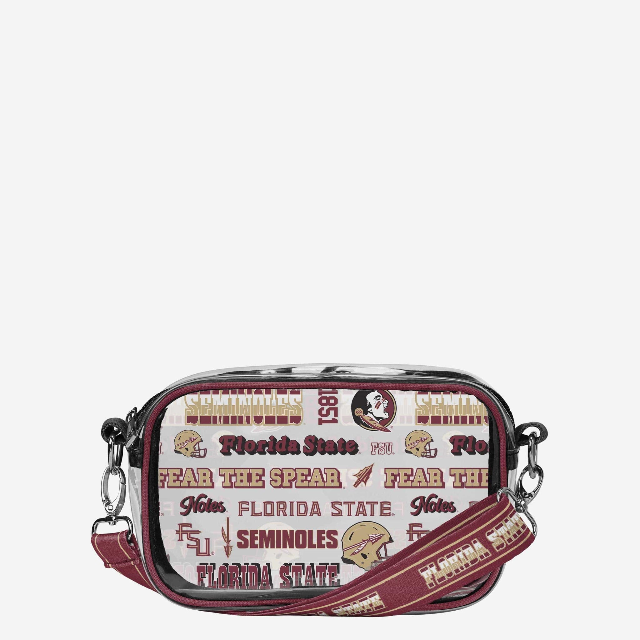 Over your shoulder and off to the game. Whether you're running errands on the town or running the tailgate in the parking lot, this Florida State Seminoles Repeat Retro Print Clear Crossbody Bag is the perfect way to carry the team like never before.