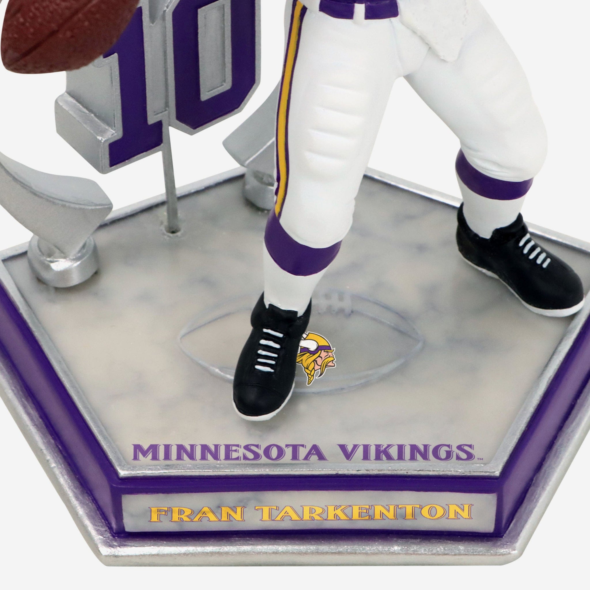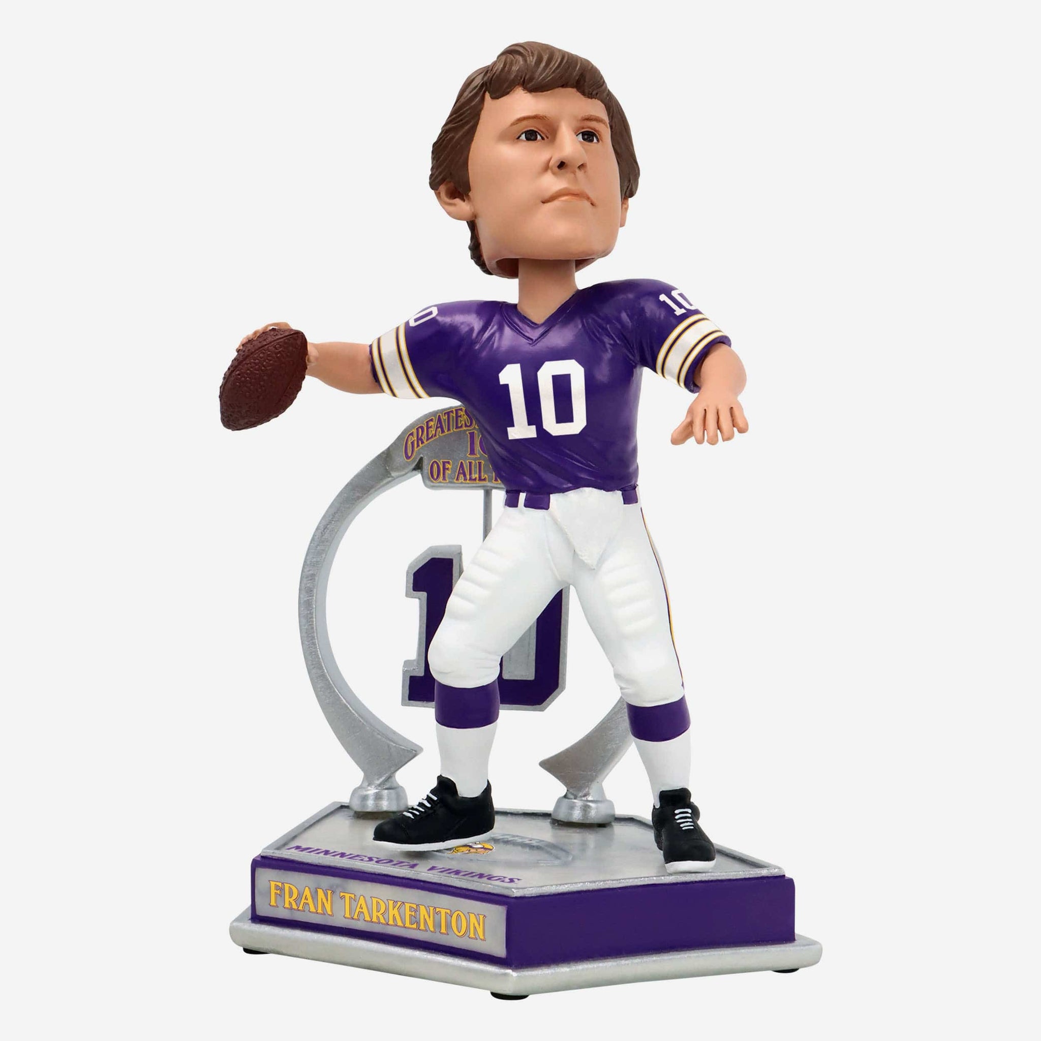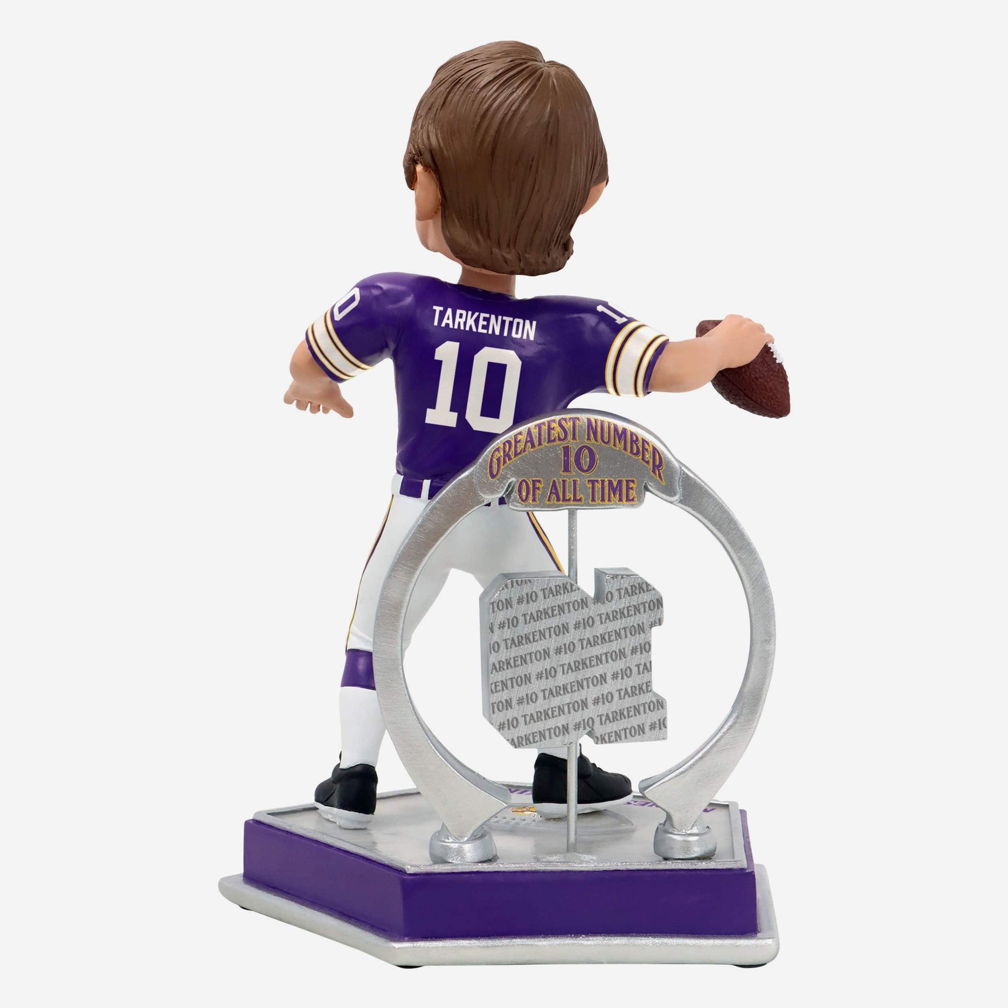 - Portrays Tarkenton posing and wearing his purple gameday uniform, showing off his legendary skills