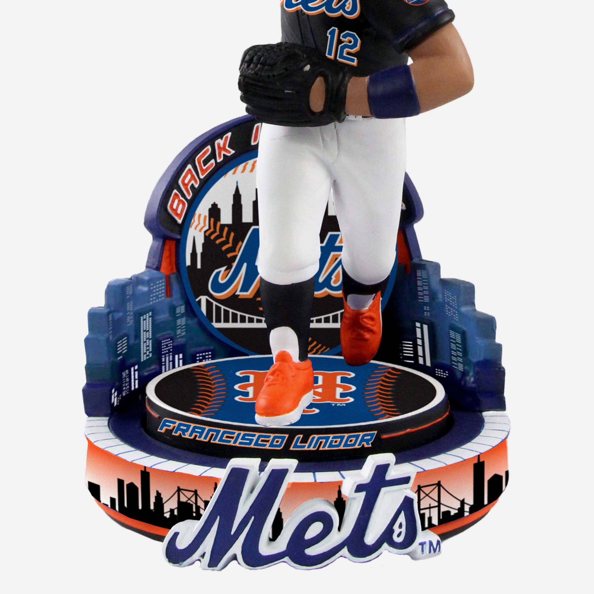 BACK IN BLACK! Throwback style meets one of today's amazin' stars with this Francisco Lindor New York Mets Black Jersey Bobblehead.