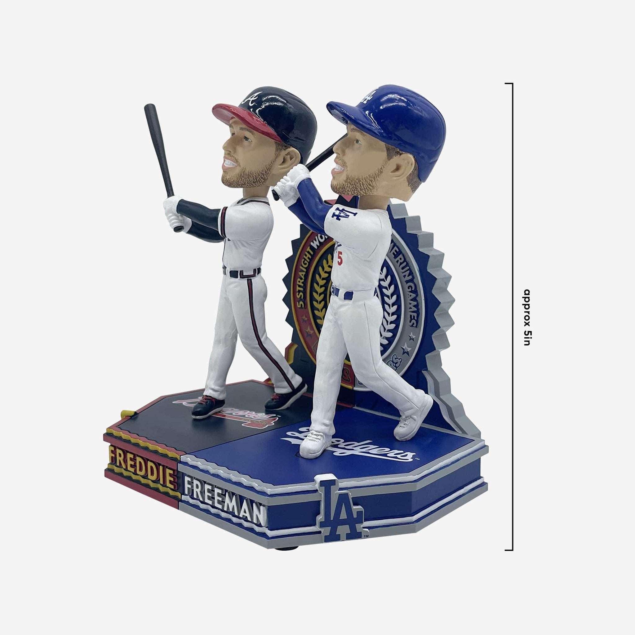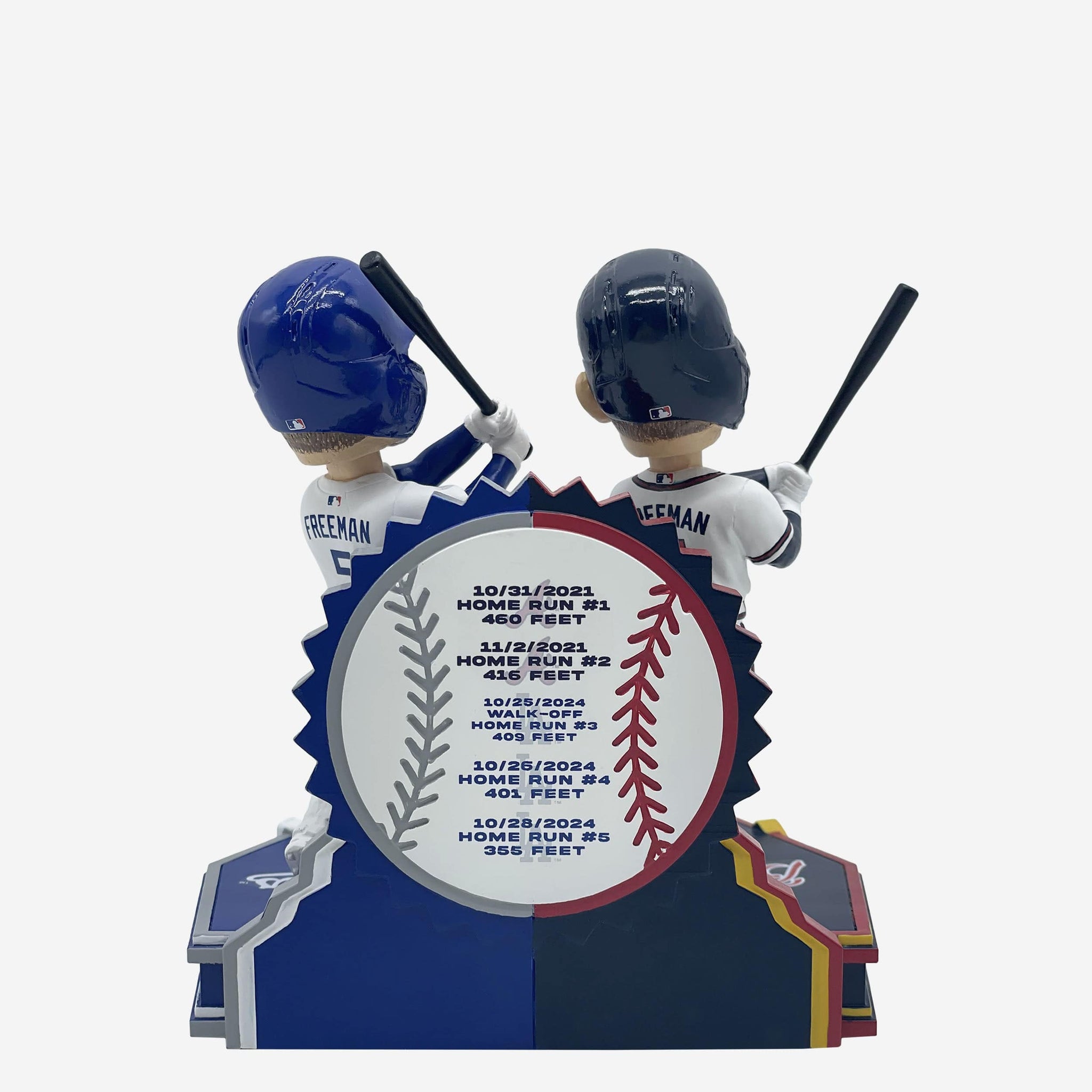 October 28, 2024: Freeman reaches five home runs in five straight World Series games! Add a piece of his legacy to your collection with the Freddie Freeman Los Angeles Dodgers & Atlanta Braves 5 Home Runs of Freddie's Dual Bobblehead.