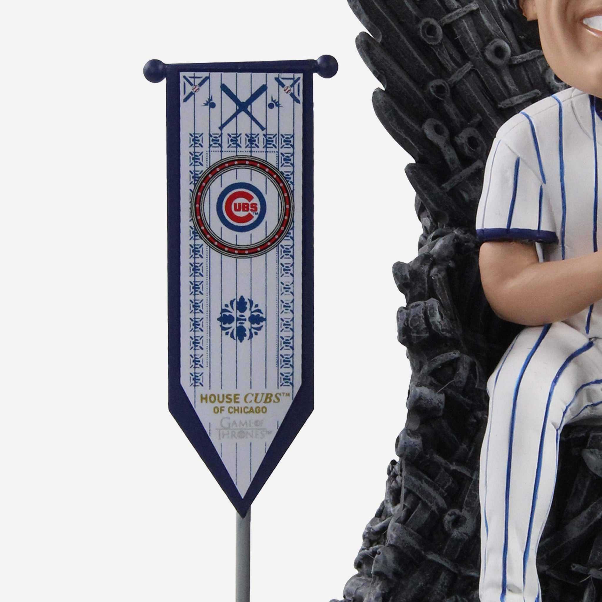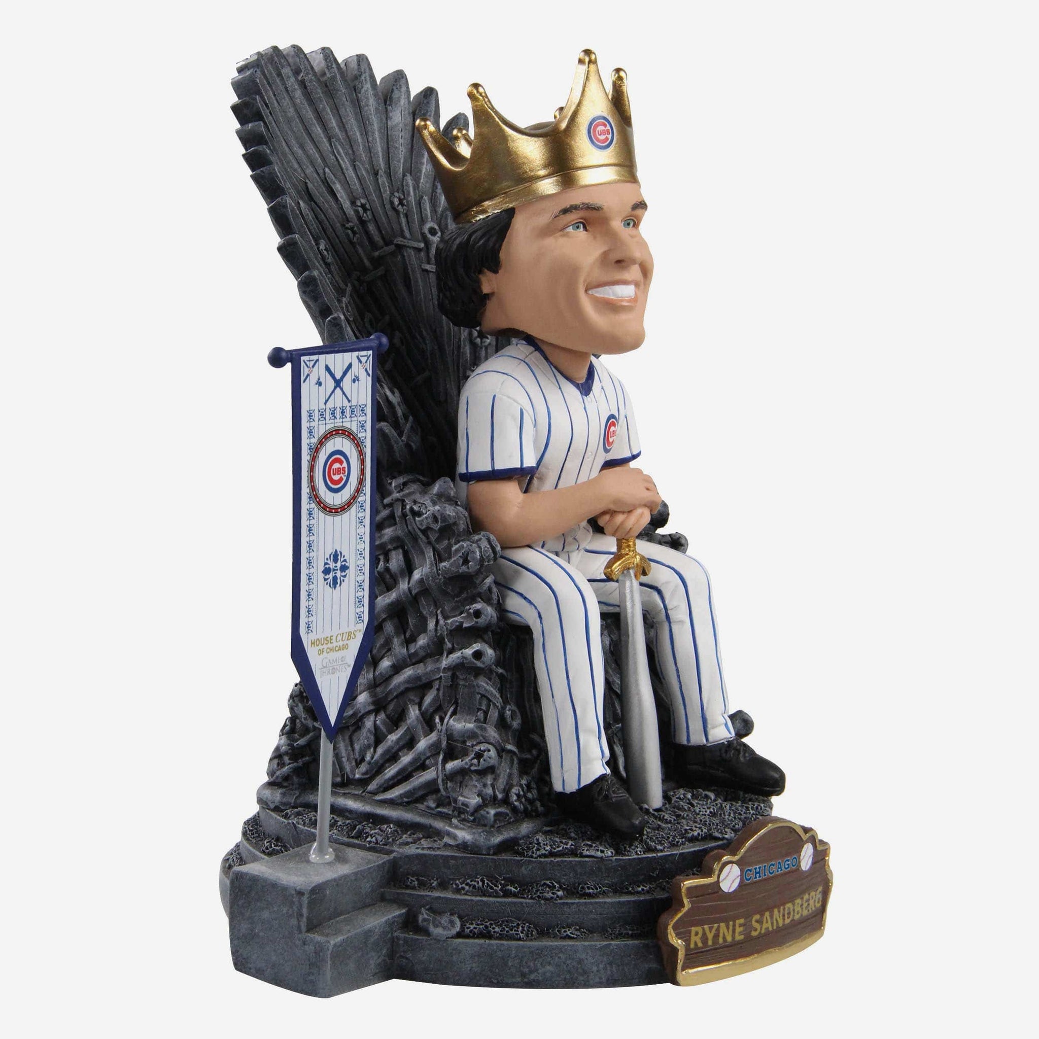 A legend on the field, a king off of it. Your fellow fans will have no choice but to bend the knee when they see this Ryne Sandberg Chicago Cubs Game of Thrones Iron Throne Bobblehead in your lineup. You're about to have the most glorious collection this side of Westeros.