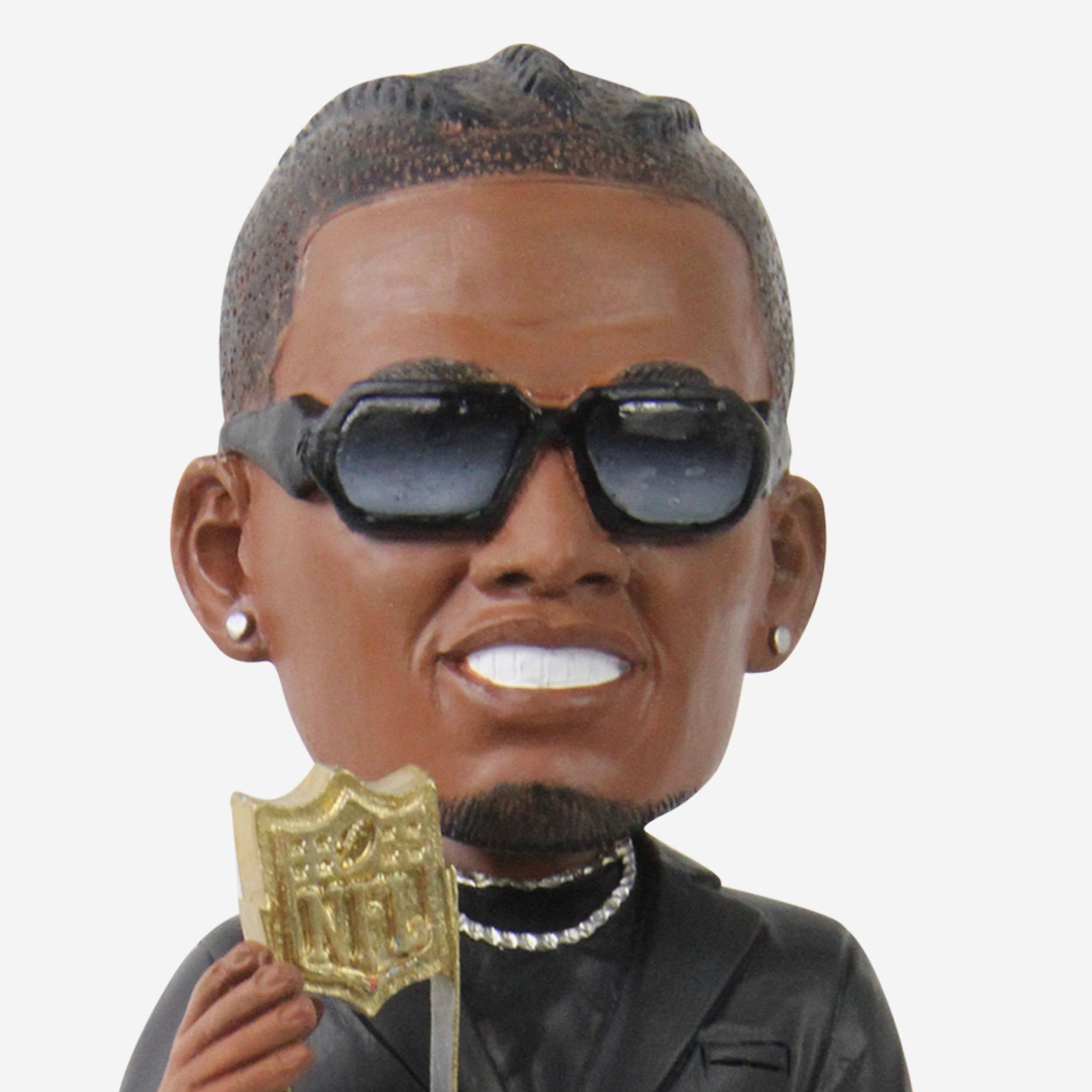 - Gold-colored base with NFL logo display, because this guy is good as gold