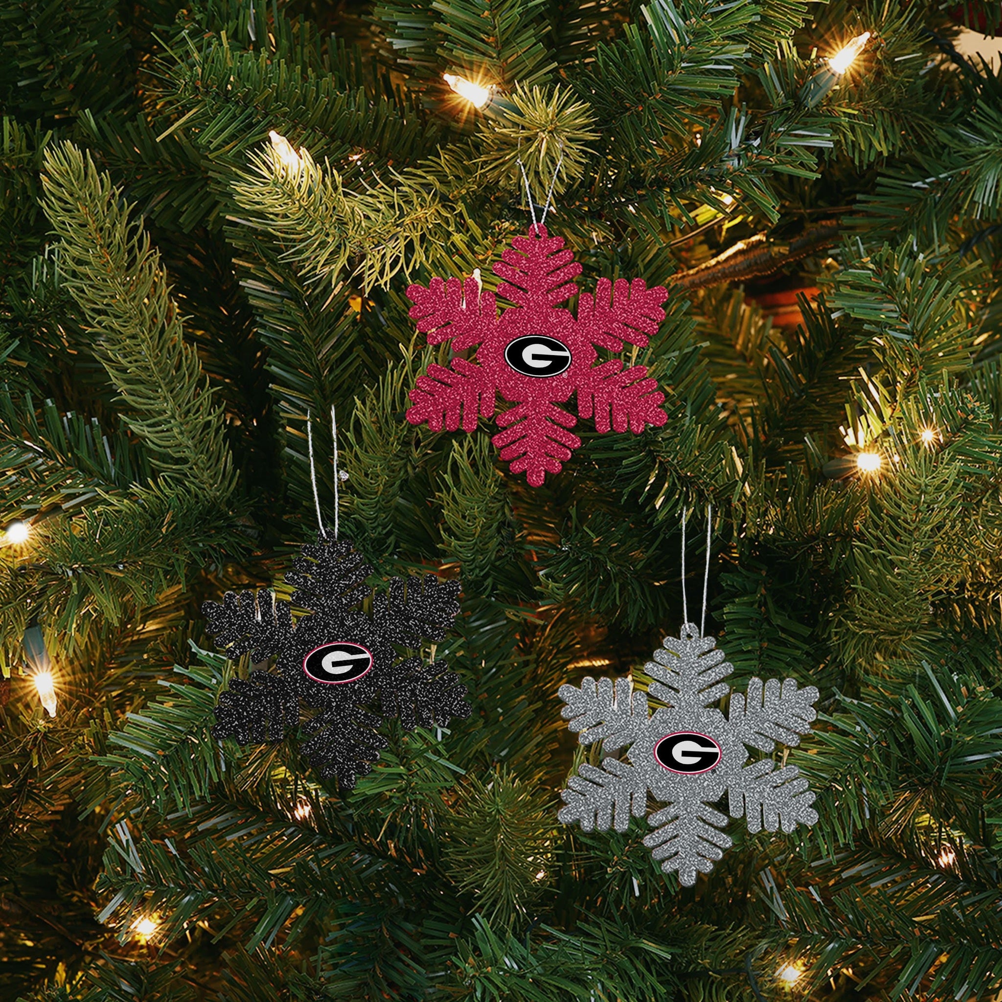 One half "Let it Snow", one half "Go Team Go!" This holiday season, let your team spirit AND holiday spirit shine by proudly displaying this Georgia Bulldogs 3 Pack Metal Glitter Snowflake Ornament!
