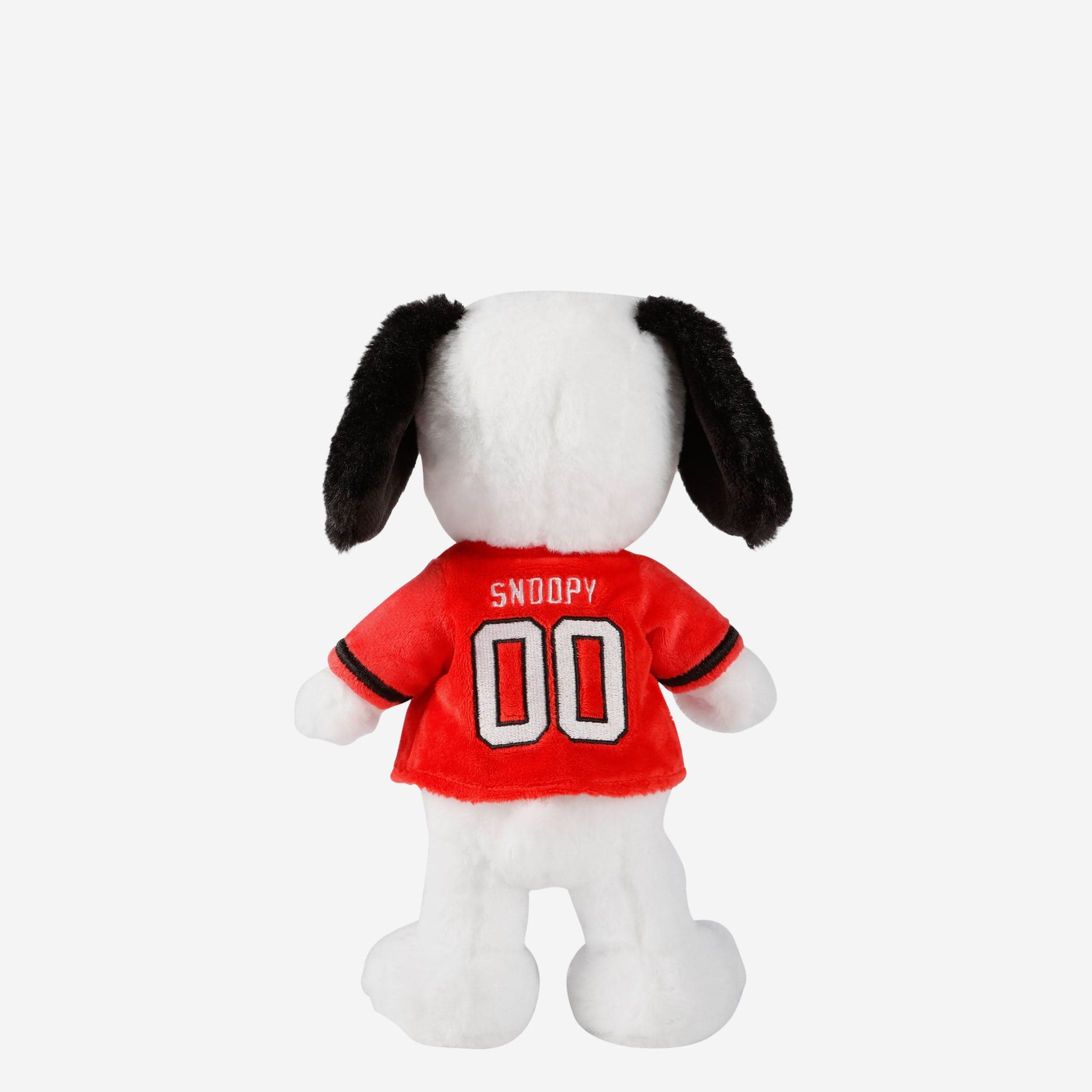 - Plush Snoopy sporting a team-colored jersey with a team logo display