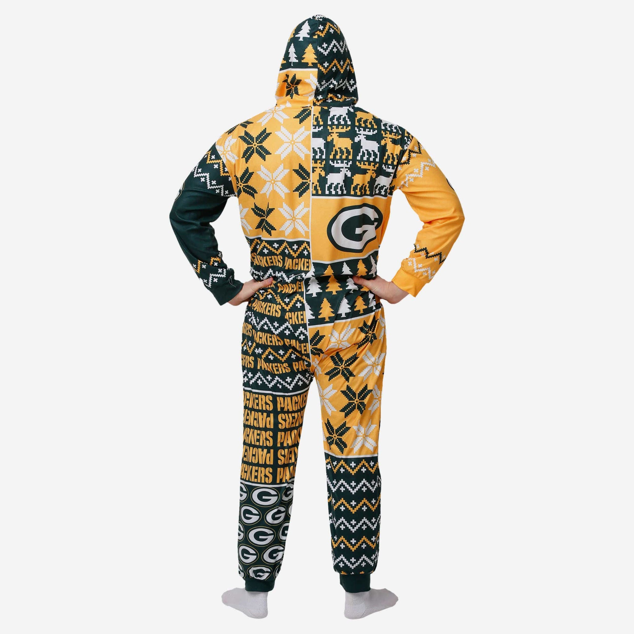 Get some matching family pajamas and dress to impress this holiday season! You won't want to miss these onesie team pajamas! These men's and women's PJ's are comfortable and show off your team spirit in the form of some sweet one piece jammies. Introducing the Green Bay Packers Busy Block Family Holiday One Piece Pajamas! Don't forget to take your holiday photo with the whole family wearing matching Christmas pajamas!