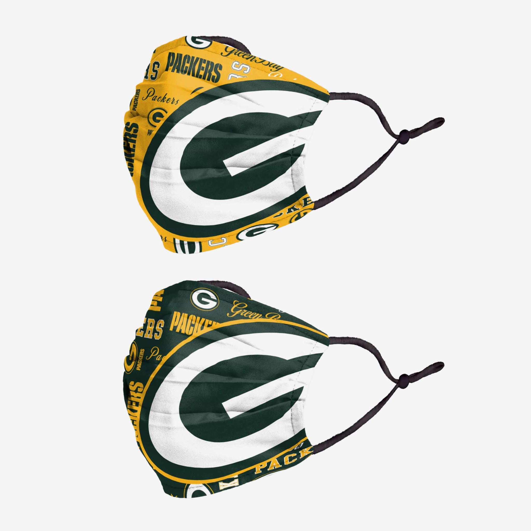 Cover up while you represent your favorite team in this Green Bay Packers Logo Rush Adjustable 2 Pack face covering!