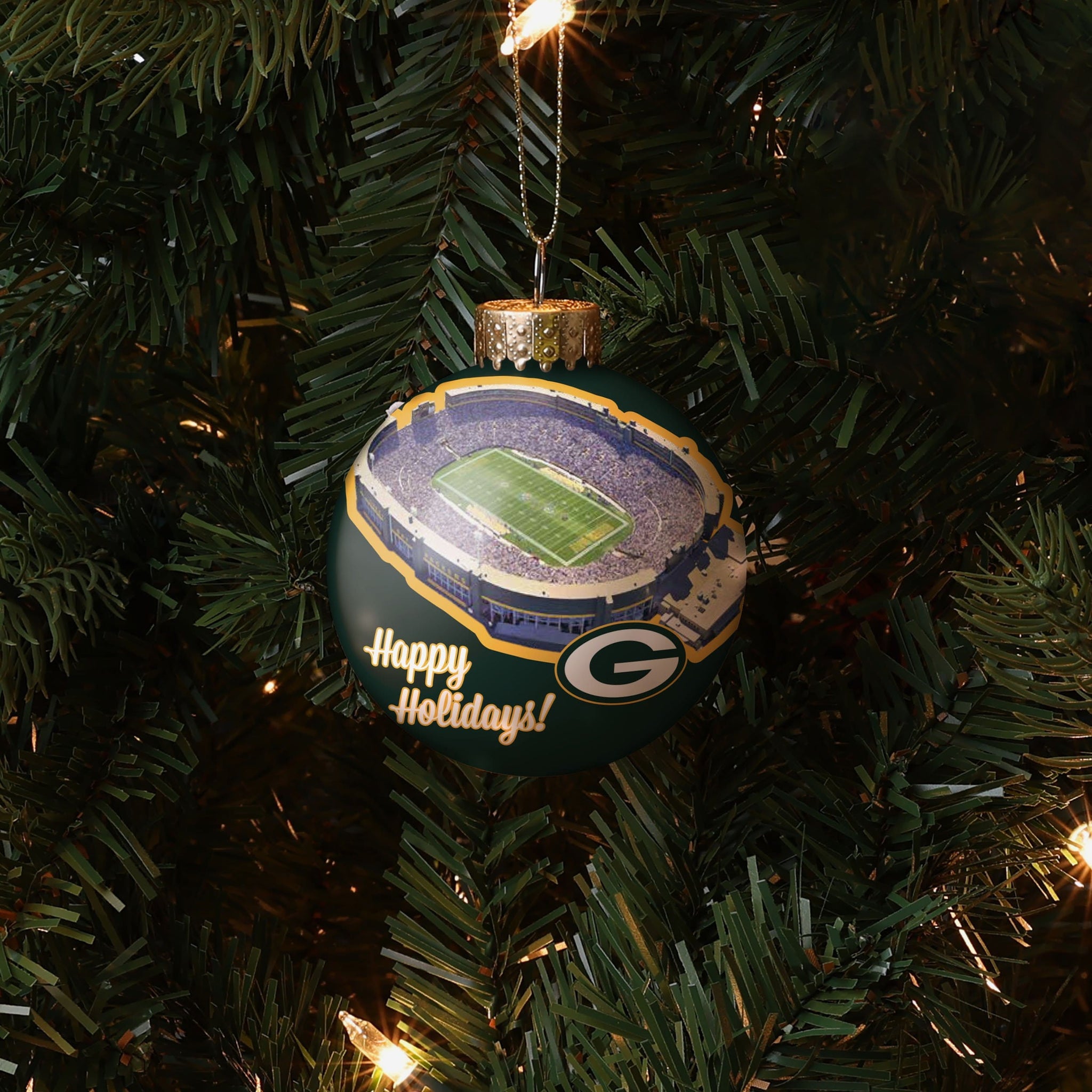 Bring some home field advantage to your home for the holidays. Now every day will feel like gameday during the holidays with this Green Bay Packers Stadium Print Glass Ball Ornament on display!