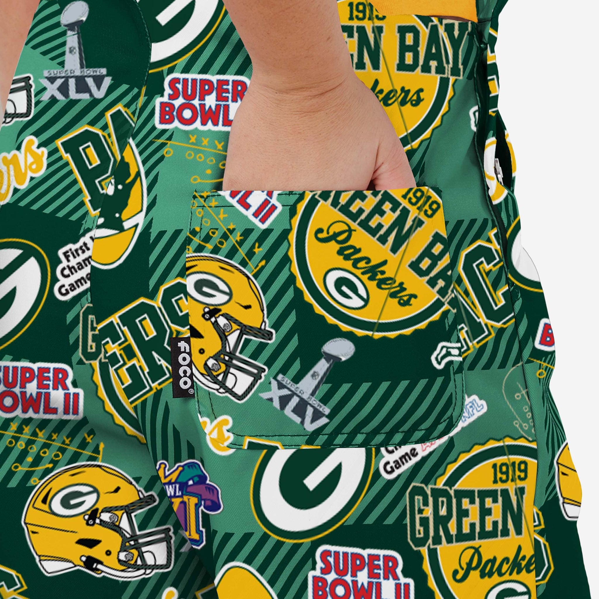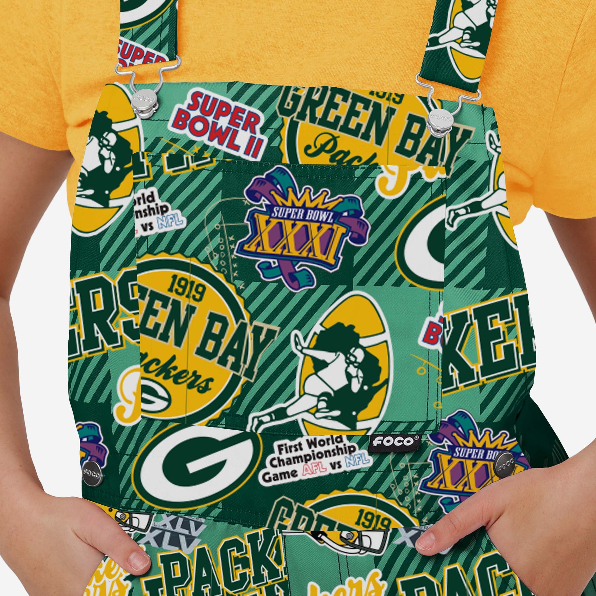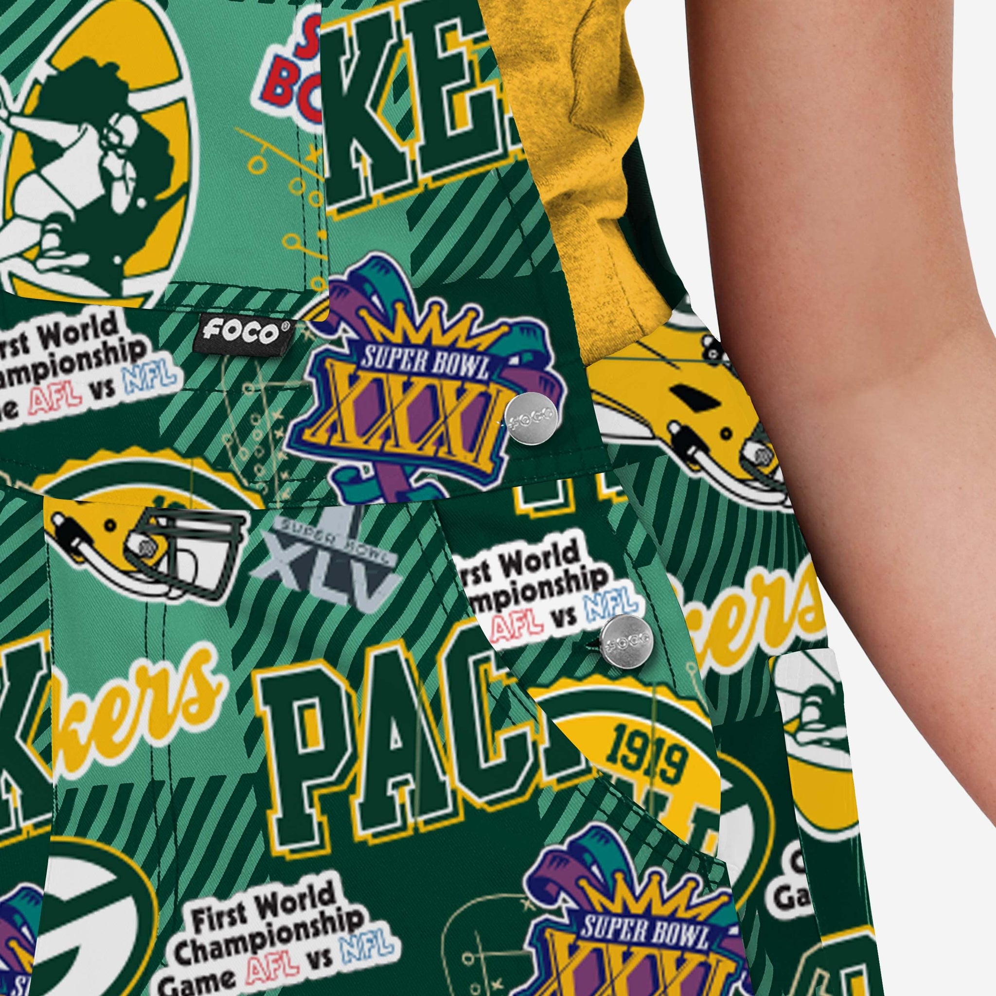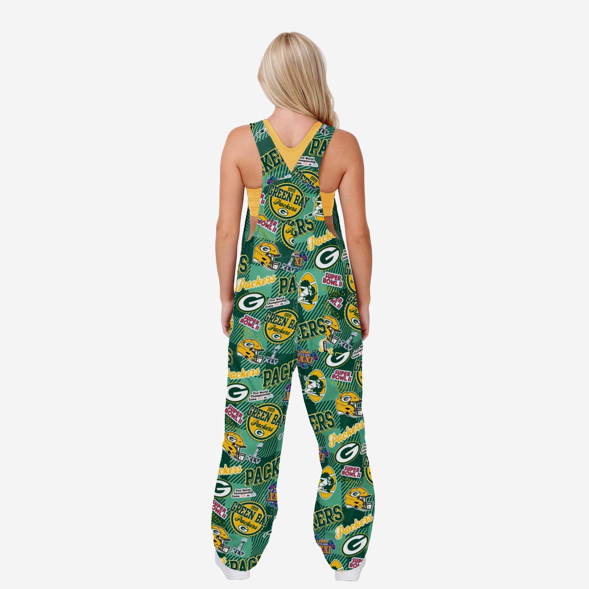 Green Bay Packers Womens Historic Print Bib Overalls FOCO - FOCO.com