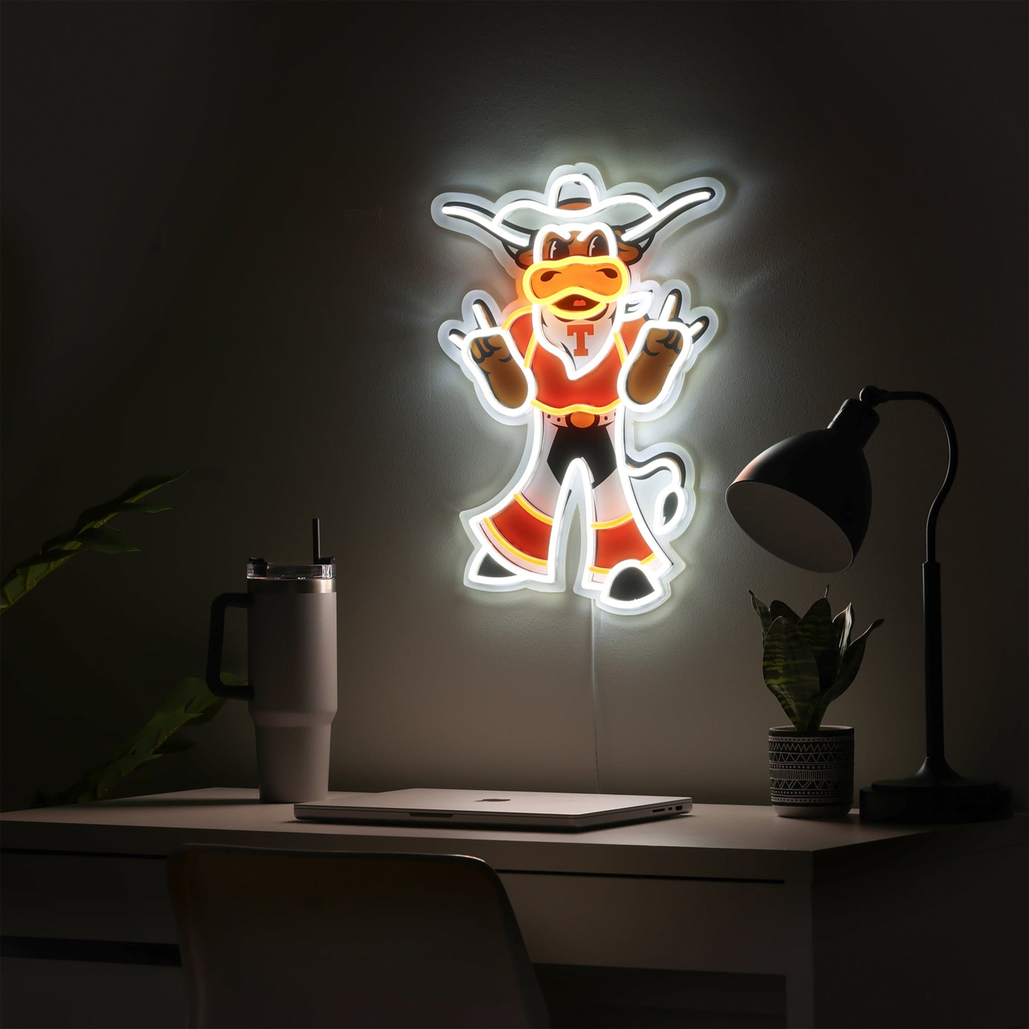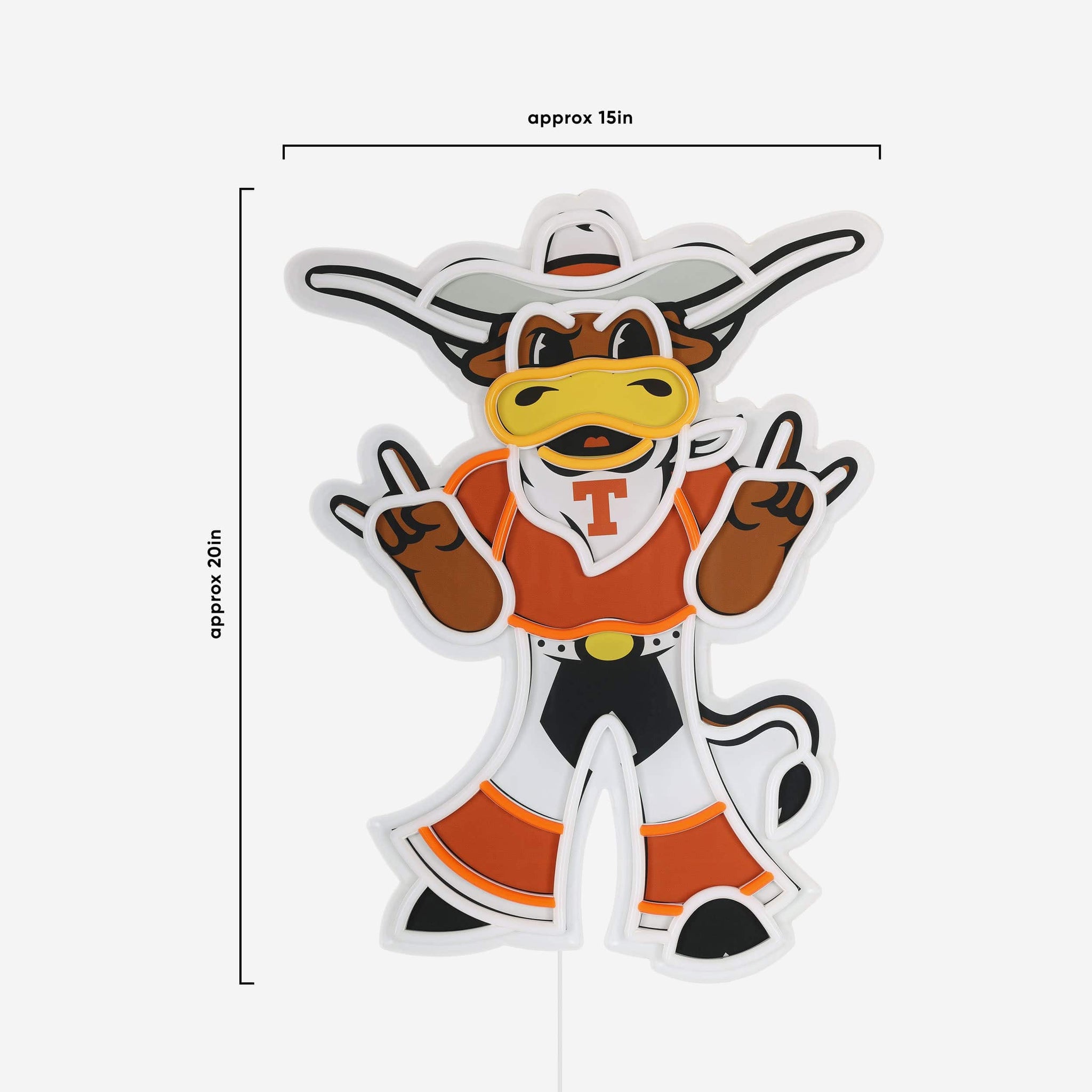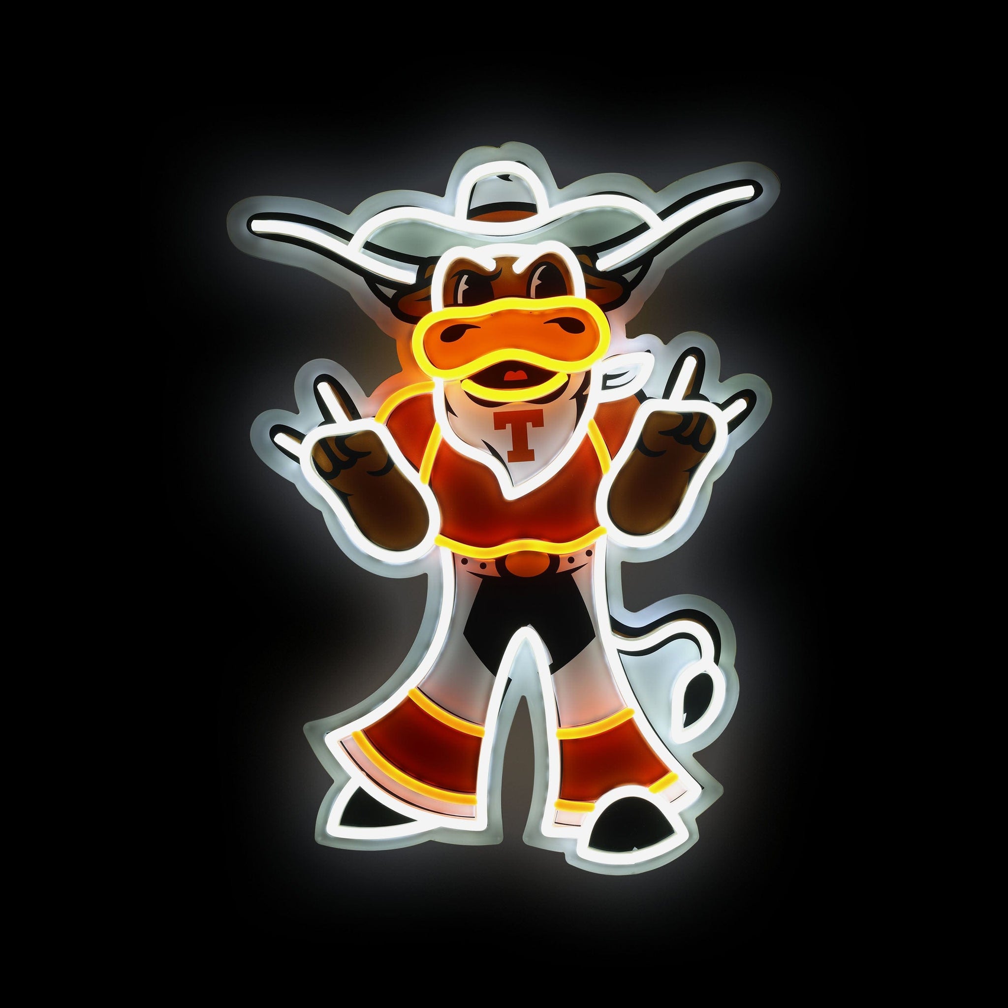 Your team mascot brings the energy to the stadium. Now, you can let them bring some glow to your gamedays with this Hook'Em Texas Longhorns Neon Light Up Mascot Sign.