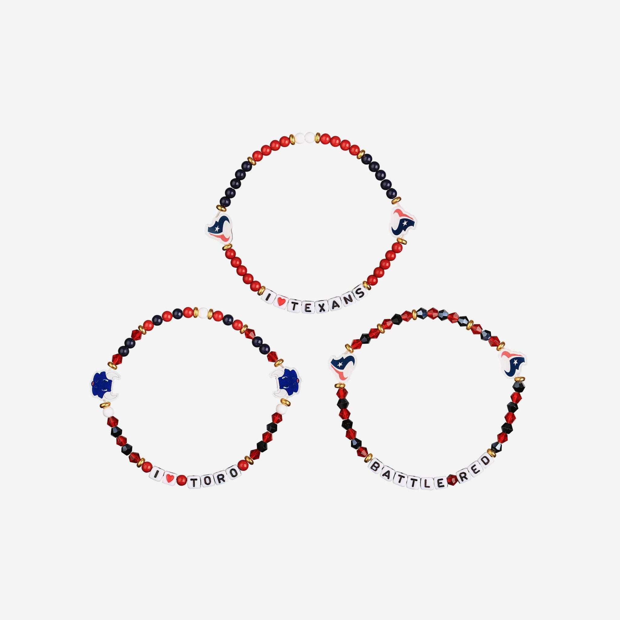 Accessorize and maximize your fandom while impressing your fellow fans with this Houston Texans 3 Pack Friendship Bracelet. These matching friendship bracelets have an all-over team-colored design and team logo displays, which makes them the perfect way to show your support for the Houston Texans and get in on the latest accessory craze.