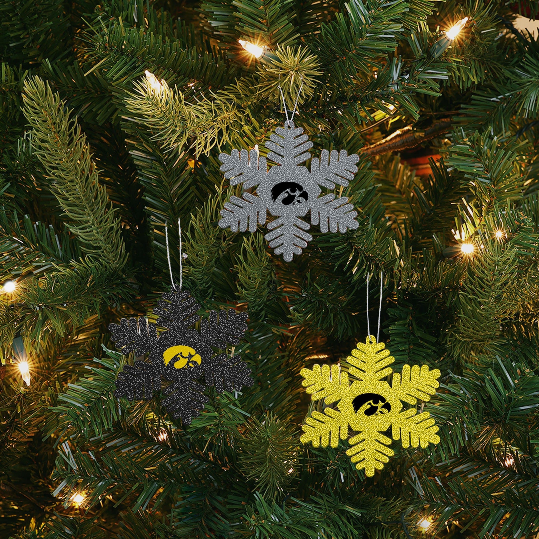 One half "Let it Snow", one half "Go Team Go!" This holiday season, let your team spirit AND holiday spirit shine by proudly displaying this Iowa Hawkeyes 3 Pack Metal Glitter Snowflake Ornament!